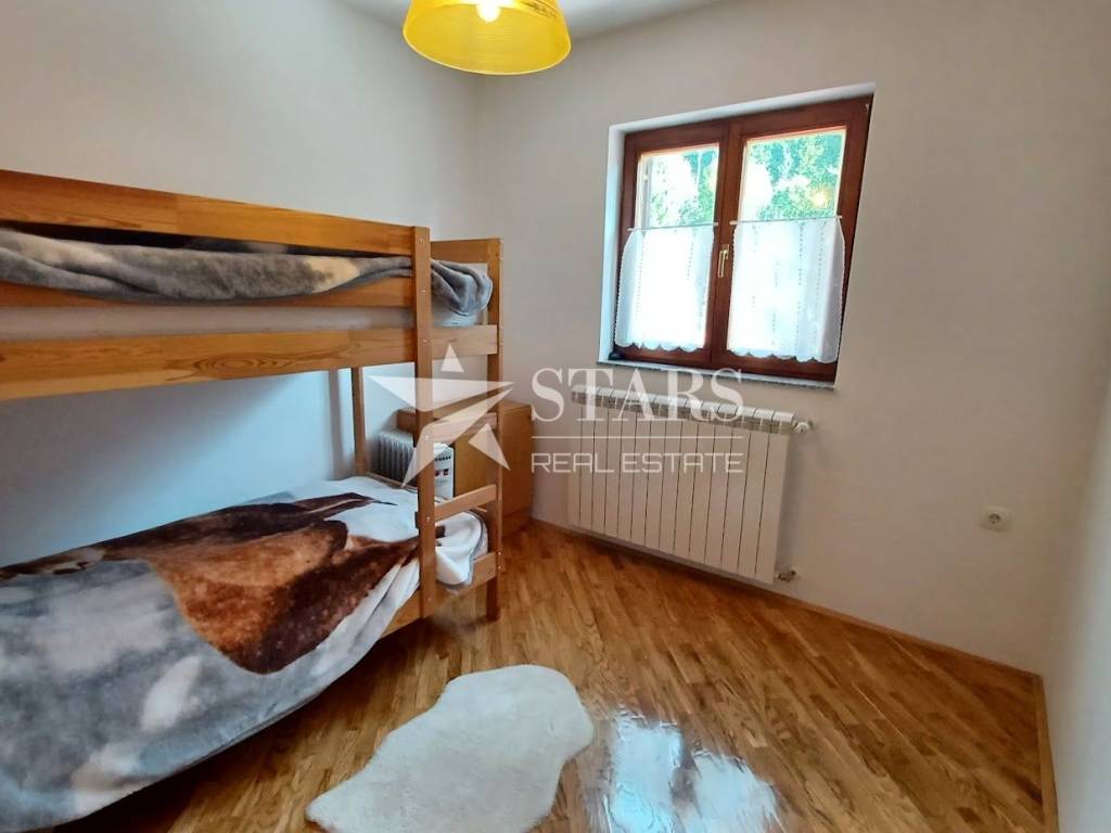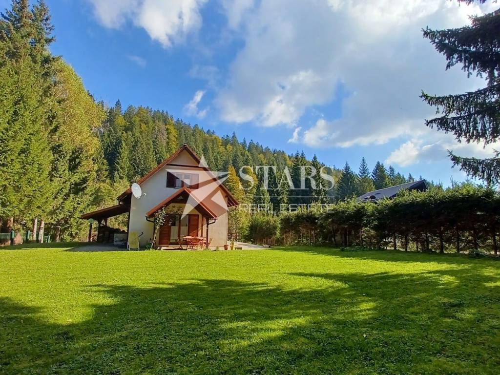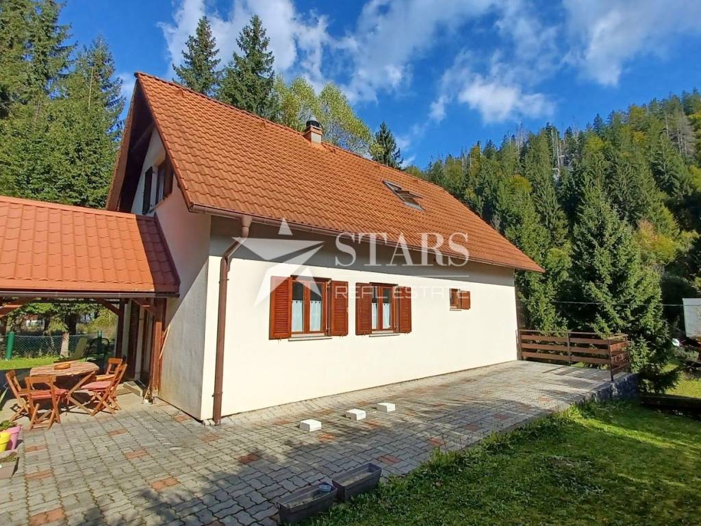 The holiday home is surrounded by mountain junipers, fresh, crisp air, and is located in the Jasenak weekend settlement between Jasenačka kosa and Bjelolasica, at an altitude of 660 meters above sea level. The access road is asphalted and regularly cleaned and maintained in winter conditions. The house has direct access from the road to a fenced, private parking area where four vehicles can park.