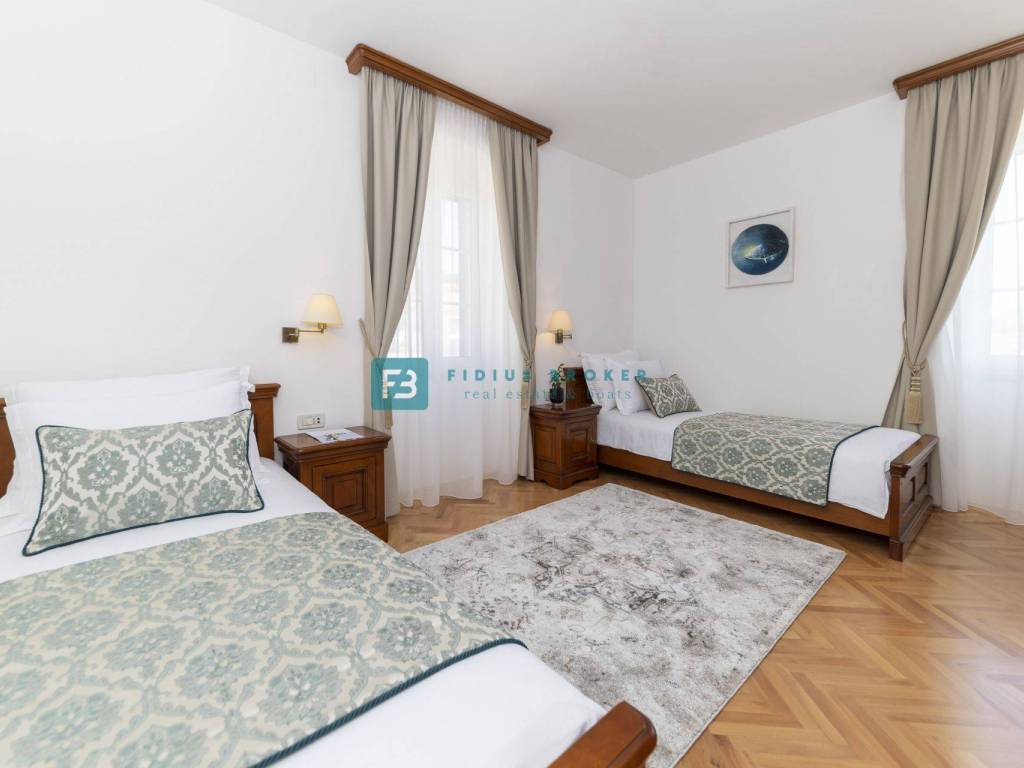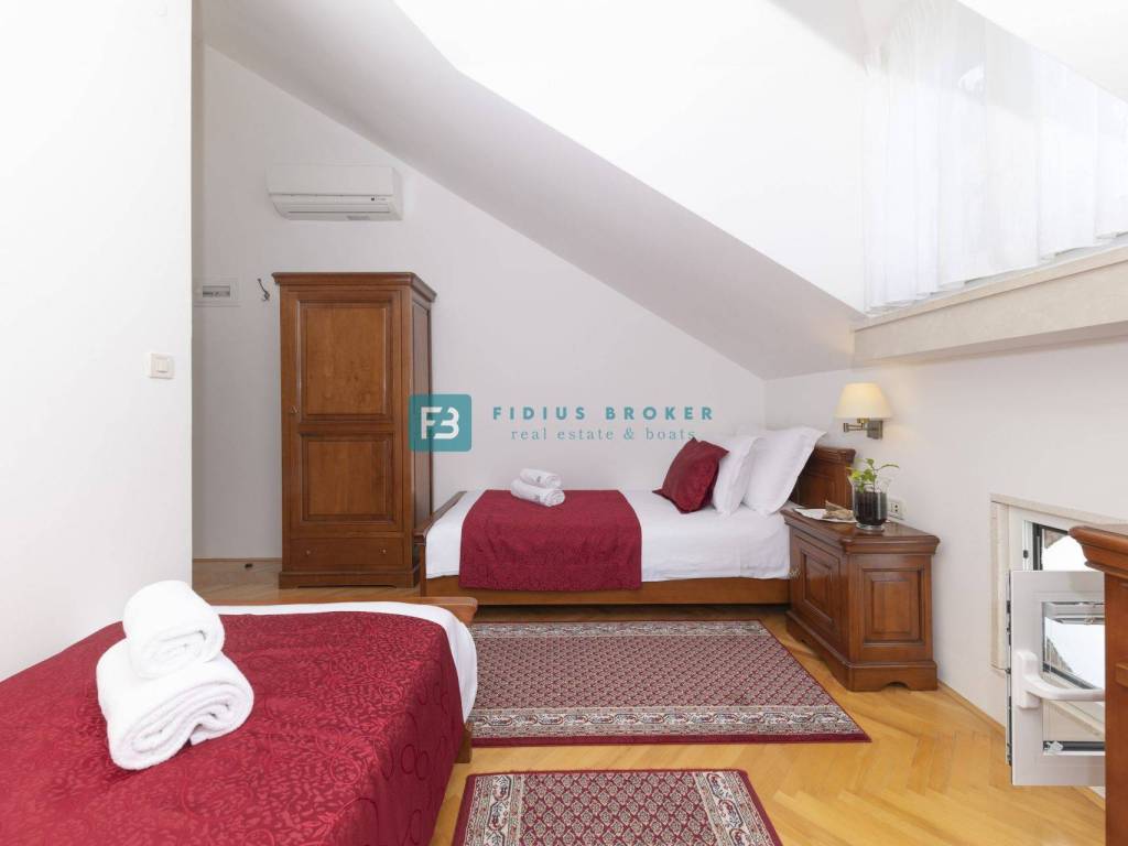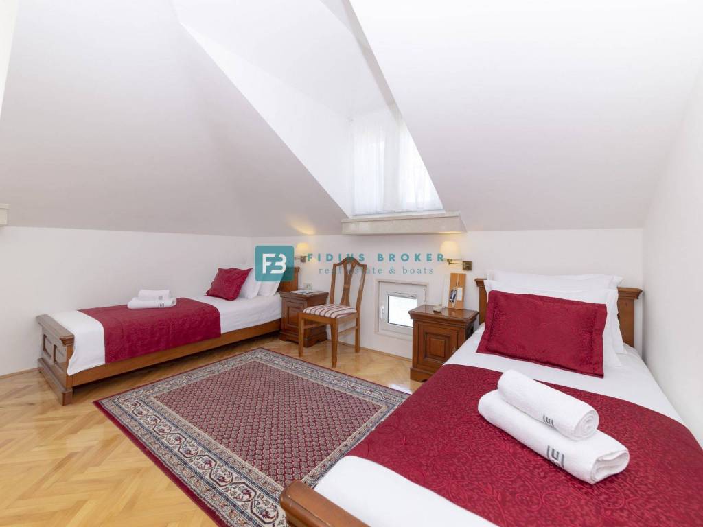 MURTER - Na prodaju prekrasna vila, smještena na samoj rivi, nadomak mora, pruža vrhunski luksuz i povijesni šarm! Pogodan za korištenje u privatne ili u poslovne svrhe, objekat je posebne atmosfere i ugođaja te zanimljive pozicije. Preuređen je i koristi se kao mini-hotel, kategorije hotel baština (heritage hoteli).