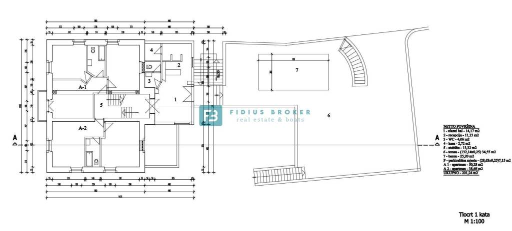 Na ovom katu se nalaze i dva luksuzna suita, A1 i A2. Ukupna netto površina prvog kata iznosi 201,24 m2.