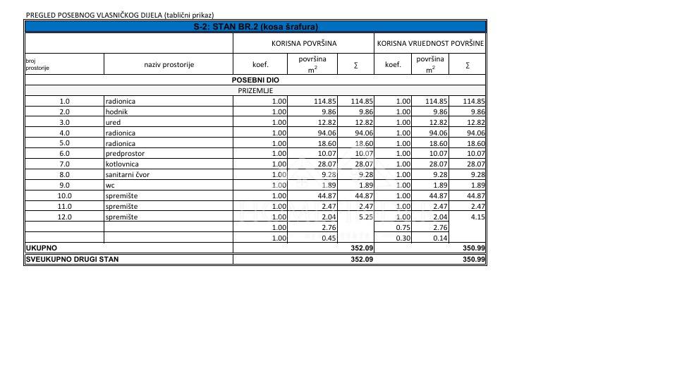 S-2 (prizemlje): 352,09 m² (12 prostorija)
