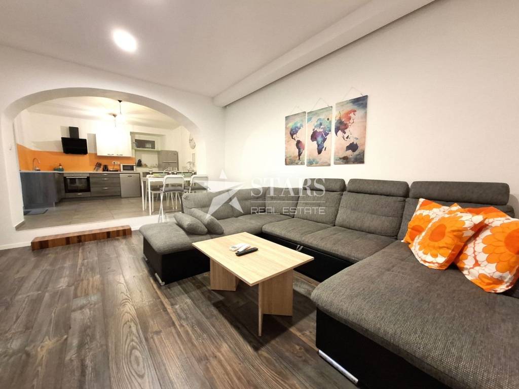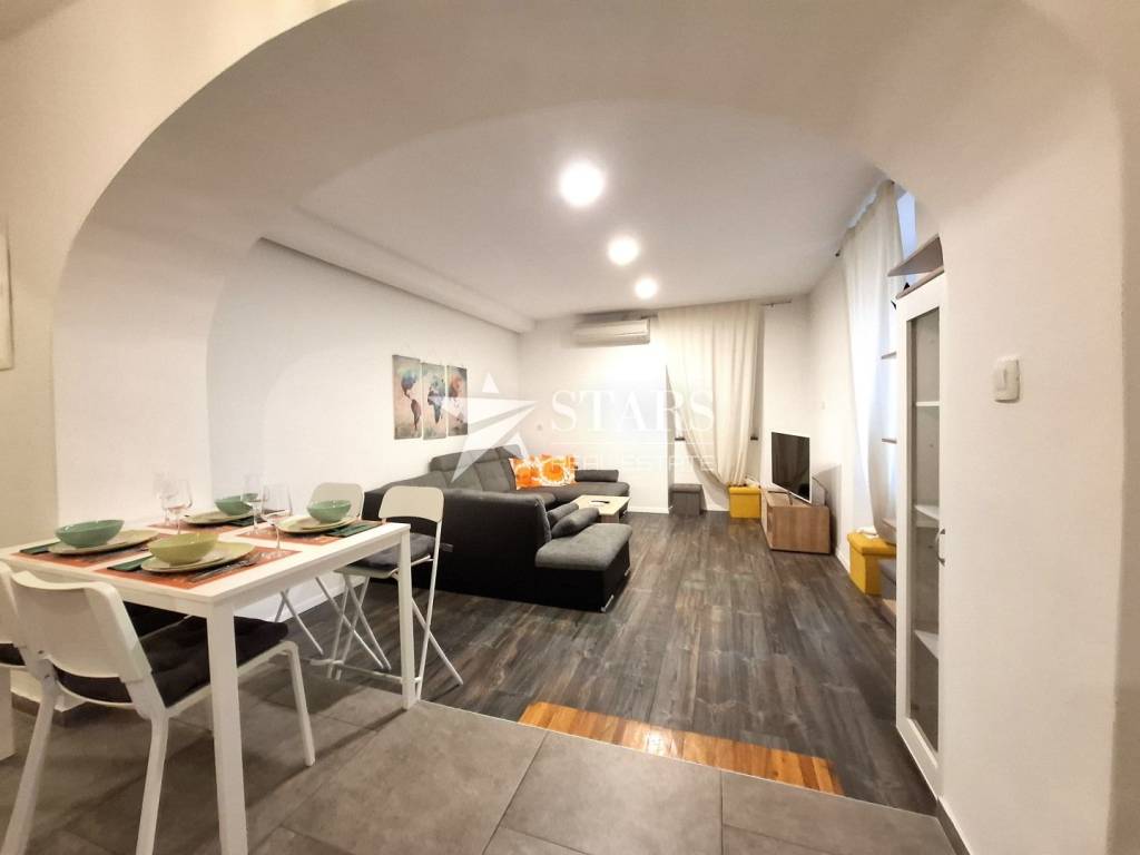 In the strict center of Opatija, in a quiet street, an apartment with an area of 100 m² is for sale. It consists of a spacious kitchen with a dining area and a living room, all in an open space concept, two bedrooms, and two bathrooms. The apartment is located on the ground floor and has a terrace at the entrance. Although situated in the strict center, it offers peace and privacy, while being in close proximity to all amenities, just 2 minutes’ walk from the sea and beaches. This property represents an excellent opportunity for living, as well as an investment.