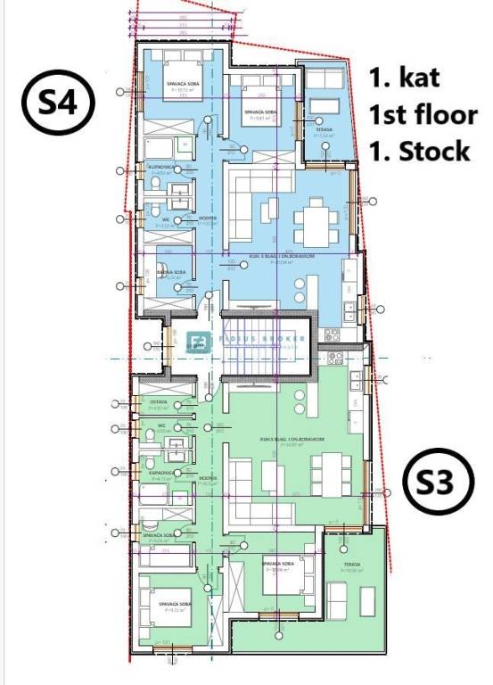 Apartment S4 with a total usable area of ​​74.05 m2 is located on the 1st floor. The apartment is east-facing and consists of a hallway, toilet, bathroom, two bedrooms, study, kitchen with dining room, and a comfortable living room with access to a covered terrace of 7.44 m2. The apartment also has one outdoor parking space in front of the building. The price is €195,000.
