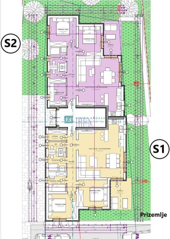 Apartment S1 with a total usable area of ​​81.29 m2 + garden of 51.23 m2 is located on the ground floor. The apartment is south-facing and consists of a hallway, toilet, storage room, bathroom, three bedrooms, a kitchen with a dining room, and a comfortable living room with access to a covered terrace of 8.83 m2. The apartment also has a garden of 51.23 m2 surrounding the apartment and the terrace, and one outdoor parking space in front of the building. The price is €225,000.