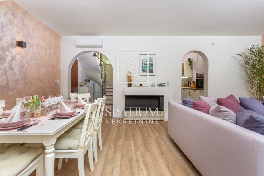 VEPRINAC, we got a semi-detached house with a garden in the offer. Located in a quiet location, it consists of a basement, where there is a garage with an uncovered terrace, and the ground floor and first floor, which make up a two-story apartment. The ground floor consists of an entrance hall, kitchen, living room with dining room, pantry and terrace. An internal staircase leads to the first floor where there are two bedrooms, one with access to the terrace, and a bathroom. The total living area is 178.10 m2. On the garden of 82.80 m2, there is a barbecue and a hydro-massage tub, as well as a swimming pool for use, which is shared with the other half of the semi-detached building. There is also enough space in the garden to park several vehicles. Electric underfloor heating, a fireplace and air conditioning units for heating and cooling the space have been installed. It is sold fully furnished. Suitable for investment for rental purposes or for living. If you want a spectacular view of the entire Kvarner, Veprinac is a location you must visit. For those with an adventurous spirit, you can reach Veprinec by a picturesque hiking trail directly from Opatija. This picturesque place of rich heritage reveals important cultural and historical monuments at every step. The first of them is the church of St. Marka and its impressive bell tower. On the way to Učka, you will come across the ancient chapel of St. Anne, which is painted inside with drawings dating back to the 15th century. You can best experience the true pleasure of the Kvarner Bay with a view of the entire bay from the beautiful Veprinac on the slopes of Učka. For all other information, please contact us with confidence. Luka Toth mediation assistant +385 91 9161 959 luka@spatium.hr Spatium nekretnine + 385 51 272 903 info@spatium.hr