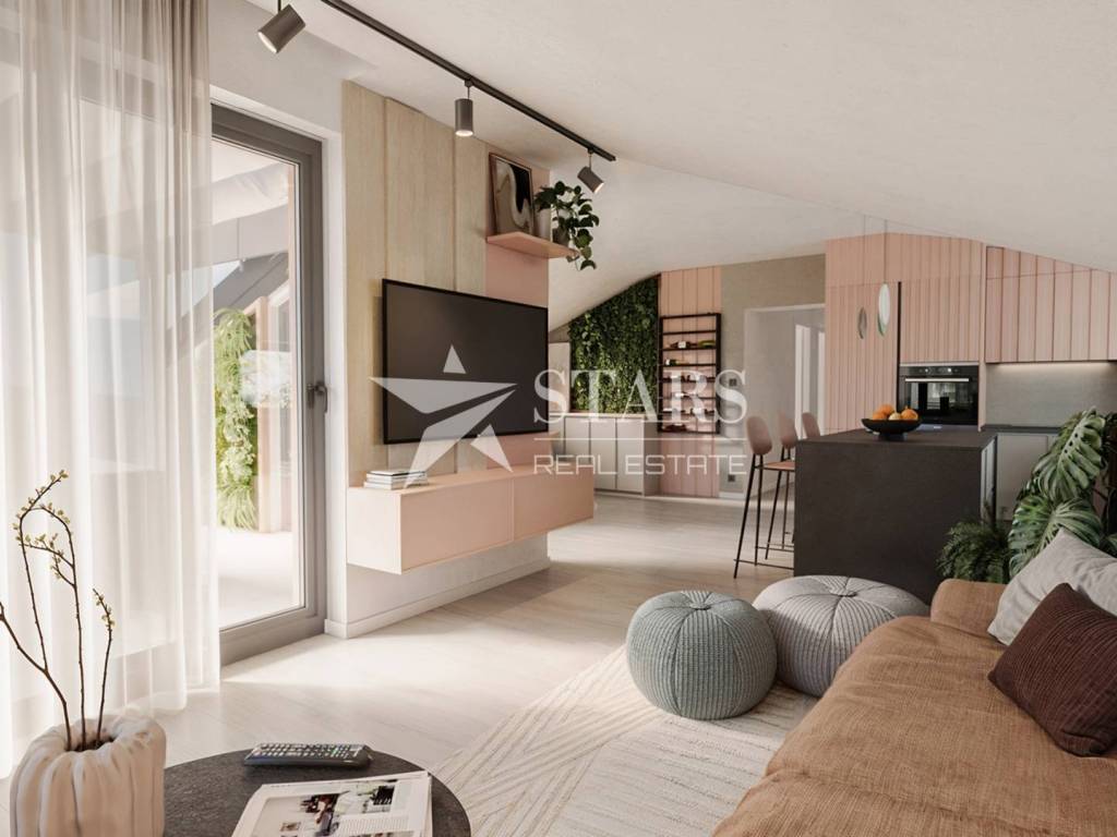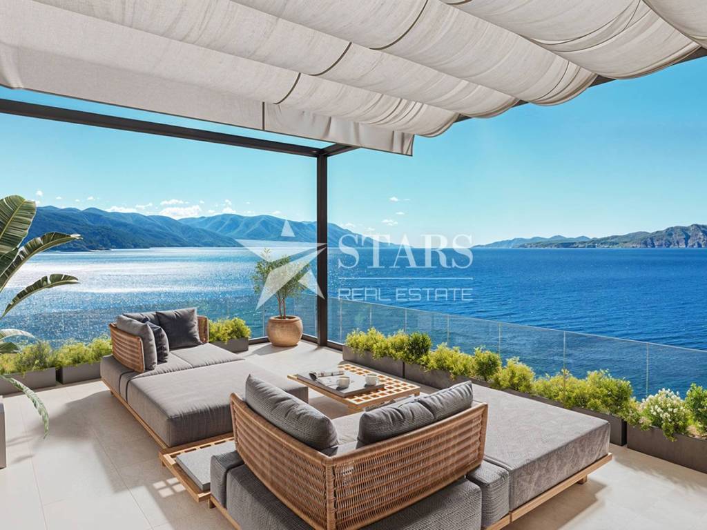 In an exclusive location just 30 meters from the sea, a spacious three-bedroom apartment is for sale, located in the penthouse of a modern building with a total of six residential units. This is a new development by a trusted investor, with completion scheduled for summer 2026.