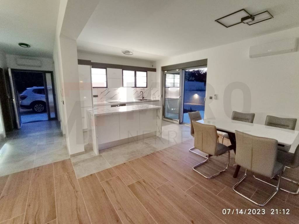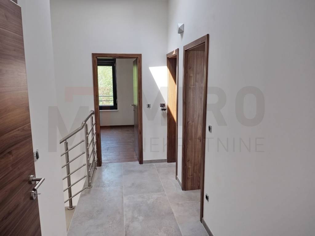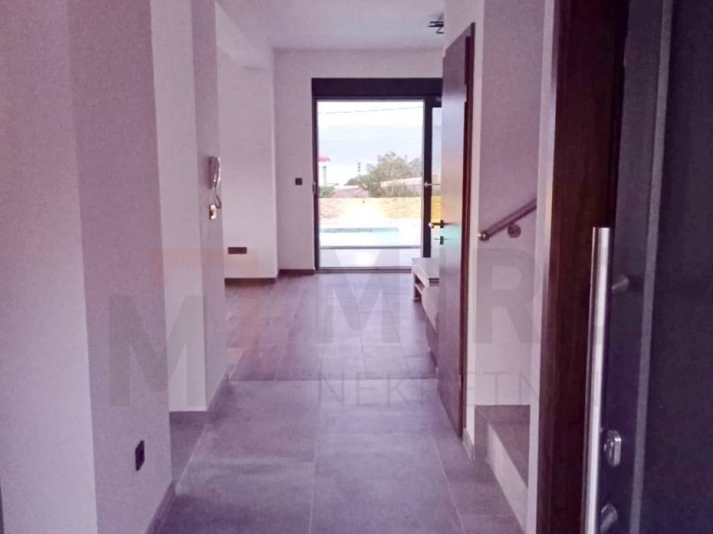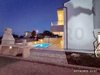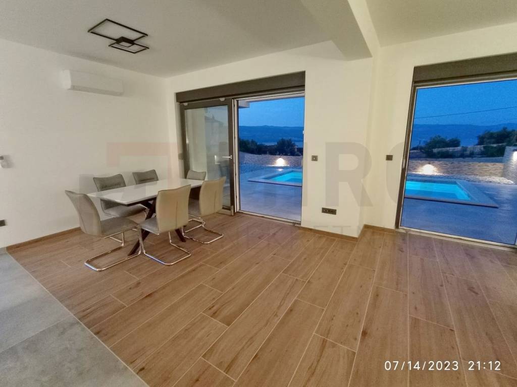 The island of Krk, near Vrbnik, a new semi-detached house with a swimming pool and a beautiful view of the sea is for sale. The house consists of two floors. The building is 150m2 of living space. The ground floor consists of: a covered entrance, hallway, toilet, laundry room, kitchen and living room, and a covered terrace. An internal staircase leads to the first floor where there is a hallway, 1 master bedroom and 2 bedrooms, 2 bathrooms, a wardrobe and an uncovered balcony and a covered balcony. The house has a swimming pool with a sunbathing area, a summer kitchen with a barbecue, a garden decorated and decorated with Mediterranean plants and a beautiful panoramic view of the sea. 2 cars can be comfortably parked in the property's spacious garden. This property is owned by a natural person. The seller of the house guarantees complete documentation. Visit us and find the square footage of your home!