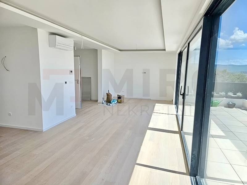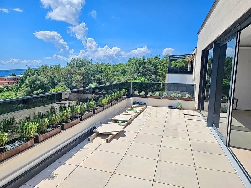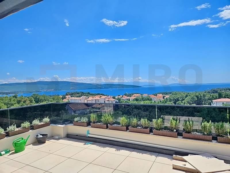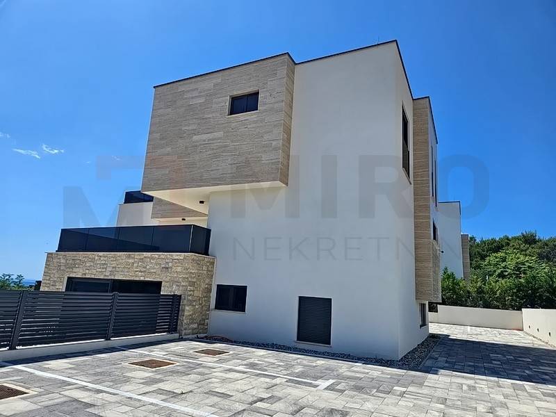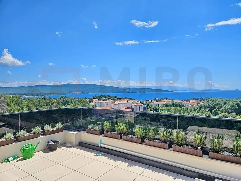 Island of Krk, city of Krk, luxury penthouse with sea view in an avant-garde villa. Penthouse with a living area of 120 m2 consists of an entrance hall, a bathroom, a spacious and airy living room, a dining room and a kitchen that form a whole, three bedrooms, one of which has its own bathroom, and a covered terrace of 35 m2. The top equipment of the luxury penthouse includes aluminum joinery, underfloor heating, high-quality Italian ceramics and parquet, video surveillance, air conditioning in all rooms and two parking spaces. Quiet location, on the edge of the green zone of the city of Krk, 600m from the sea and the center. Exclusive and modern architecture. The property is in the VAT system, which means that the buyer is not obliged to pay tax on the displayed price. The seller guarantees proper documents and prompt transfer of ownership of the apartment to the buyer. Visit us and find the square footage of your home!