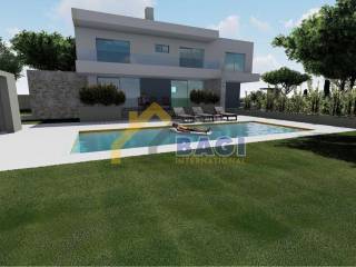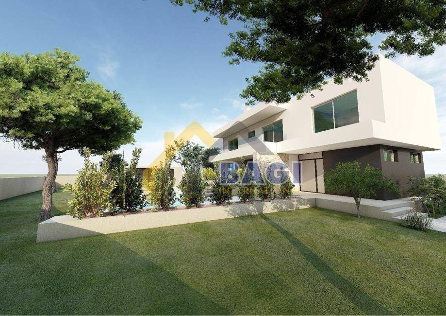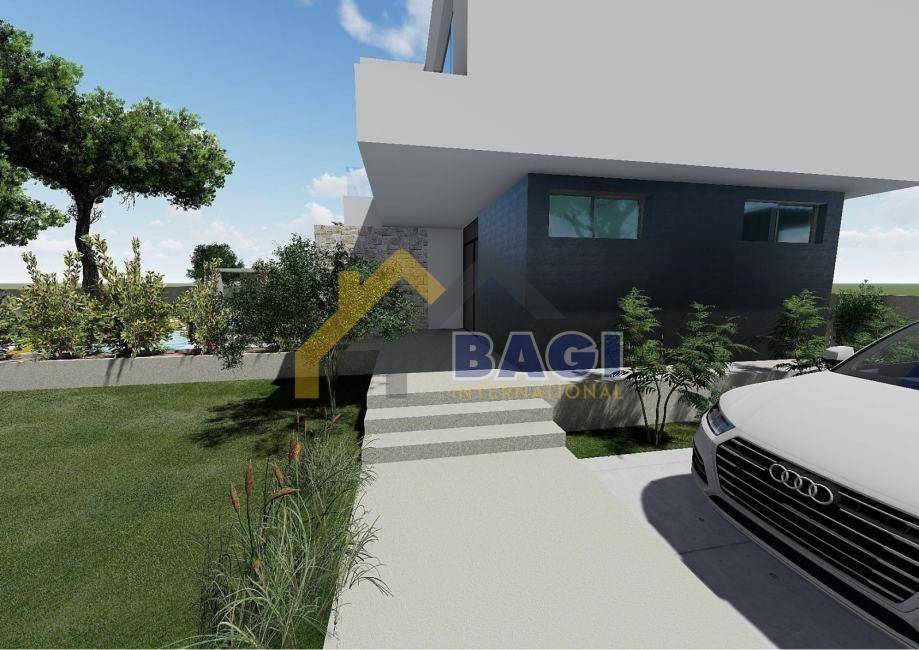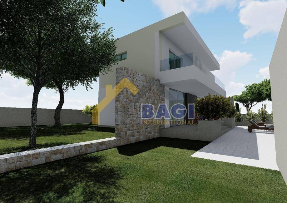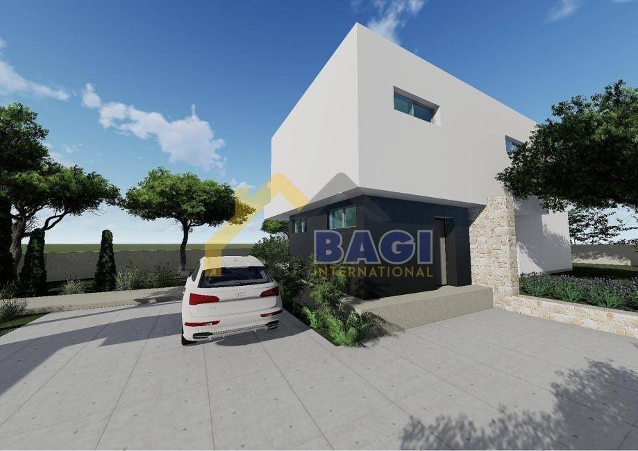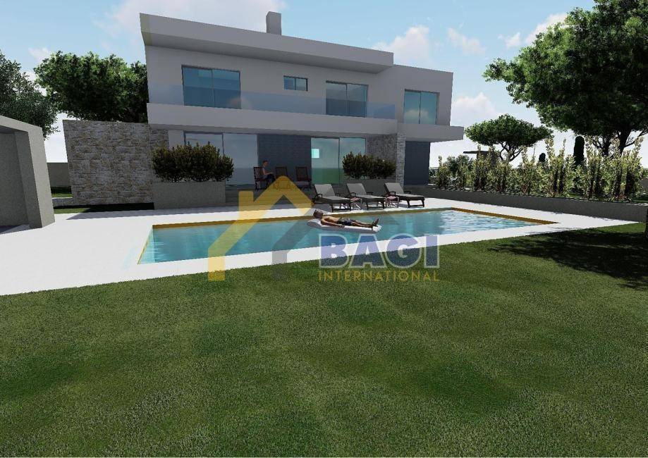 A modern house with a swimming pool facing southwest is for sale, it is located at the end of the construction zone, so it has added privacy and peace. The villa is under construction and is scheduled for completion at the end of 2023. The house consists of a living room with a kitchen and a dining room, a toilet, a storage room, a boiler room and a covered terrace, as well as an auxiliary building with a fireplace on the ground floor. Upstairs are three bedrooms with bathrooms and a balcony. The house will be heated and cooled with inverter air conditioners, PVC joinery, ceramic tiles, parquet in the rooms, tiles in the pool. The first phase of underfloor central heating and collectors. In the yard, a swimming pool of 40 m2, lawn with automatic irrigation, parking for two cars, front yard door with automatic opening, fence...