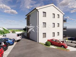 For sale is a two-bedroom apartment with a living room (S1), located on the ground floor of a modern residential building(A) in a peaceful area of Kosi, surrounded by greenery, offering a beautiful view of the Kvarner Bay.