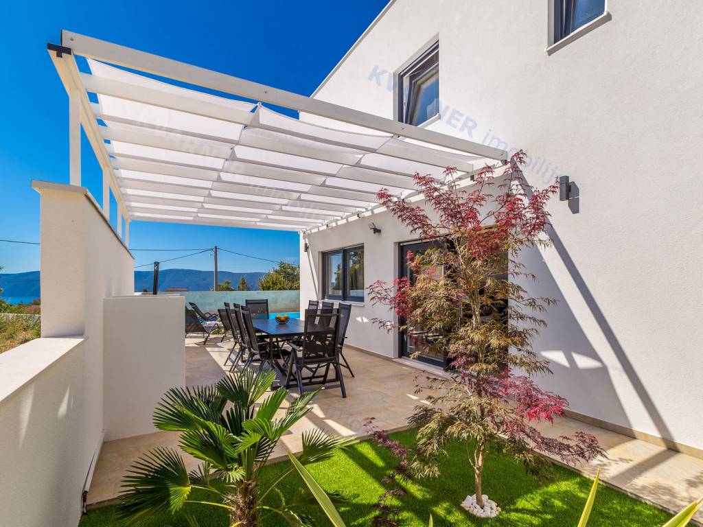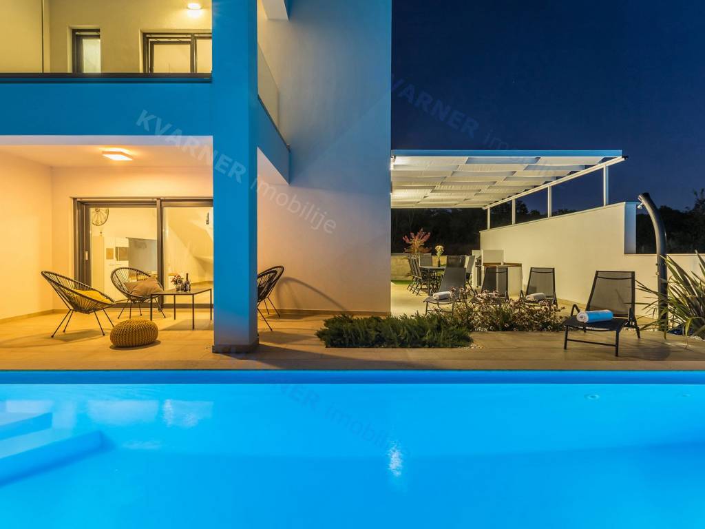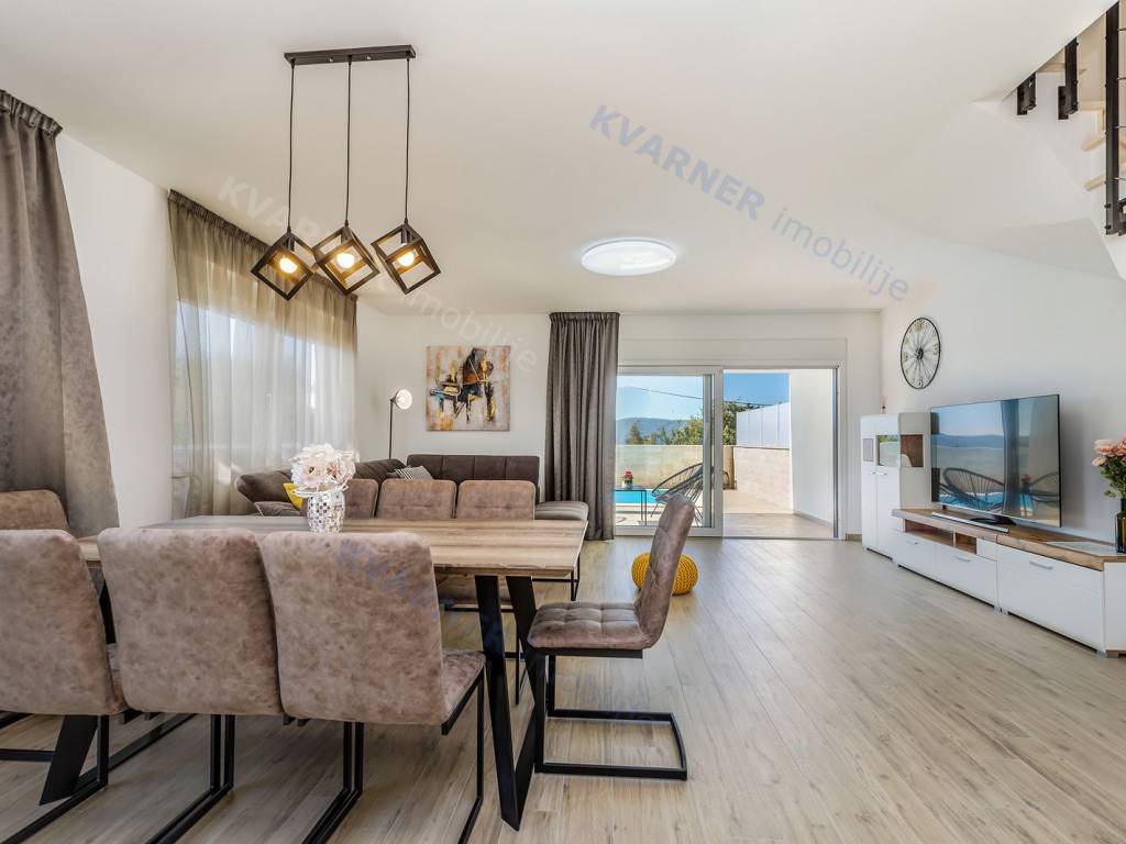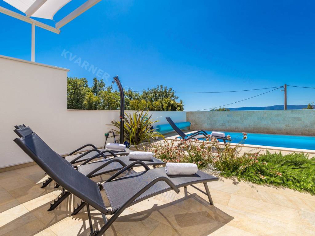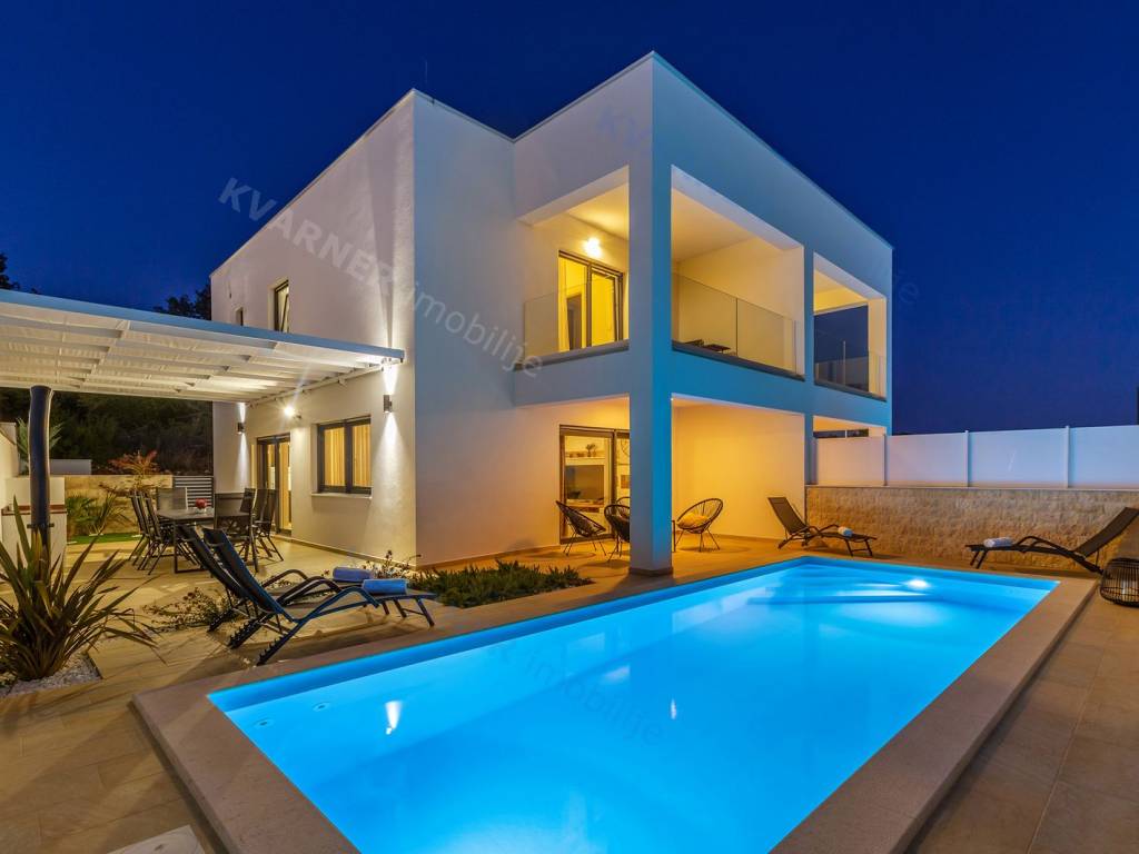 The island of Krk - only in our offer! For sale are two new, modern and luxuriously equipped houses in a quiet position away from the crowds and city bustle, ideal for a pleasant vacation or renting. The house is built on two floors - a total area of 118 m2, and consists of three bedrooms, three bathrooms, kitchen with living room, large terrace and garden with pool and sun deck. The terrace offers a beautiful view of the sea and the surrounding islands. Along with the existing facilities, the price includes a plot of 600 m2 with a building permit and paid utilities for the construction of another of the same facility - a double with swimming pools.