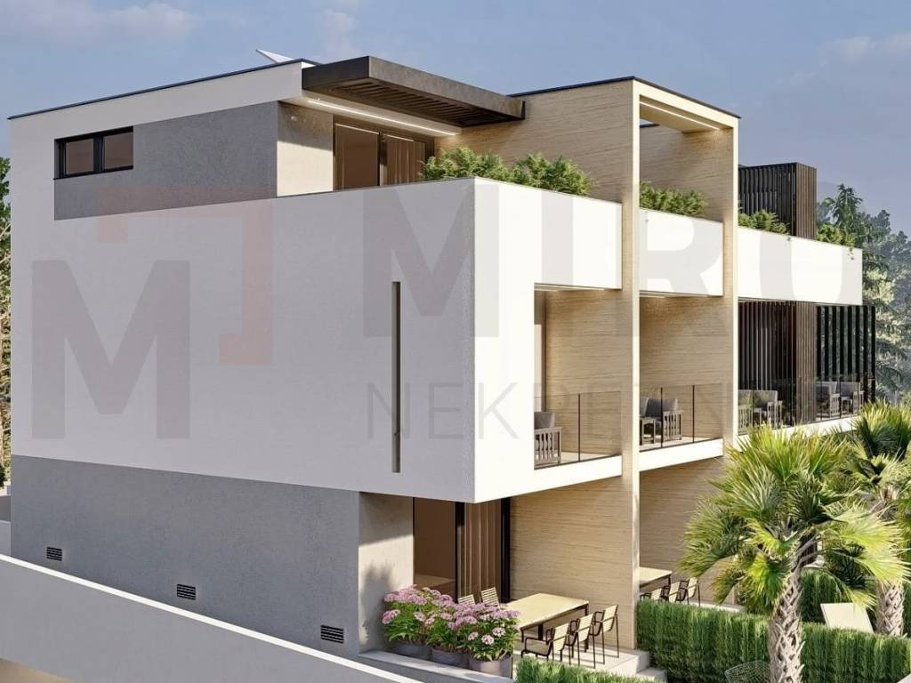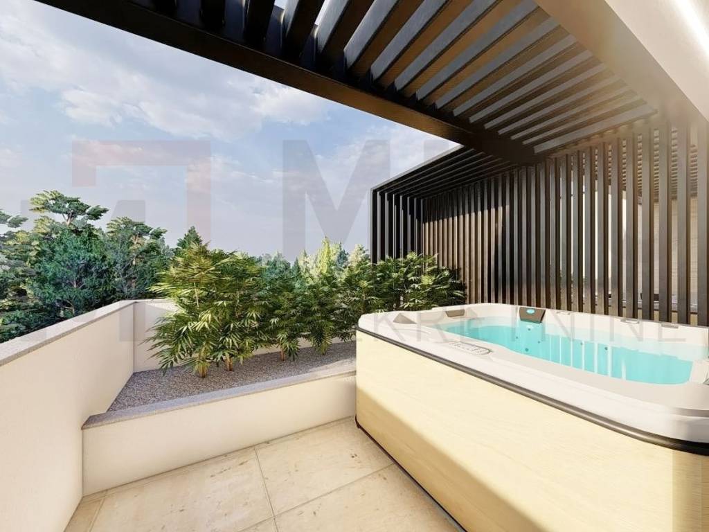 Island of Krk, city of Krk, luxury three-story apartment in the center of the city of Krk, 88 m2. The house is divided vertically into four apartments. The reason for the vertical separation is that each apartment has a ground floor and two floors. Maximum utilization. Top position and high quality of construction and materials. On the first floor there are two bedrooms, a balcony, a bathroom and a staircase leading to the second floor. On the ground floor there is an entrance area, a kitchen, a dining room, a terrace with access to the garden, a toilet and a staircase leading to the first floor. On the first floor there are two bedrooms, one of which has access to a balcony, a bathroom and a staircase to the second floor. On the second floor there is a gallery with a bathroom and a terrace with a jacuzzi. The owner of this apartment will have one garage space and one outdoor parking space. Near this property there are all necessary facilities for a pleasant vacation: beach, shop, promenade. The price includes VAT, which means that the buyer is exempt from paying any tax and the seller guarantees clean ownership documents. The planned completion of the works is December 2023. Visit us and find the square footage of your home!