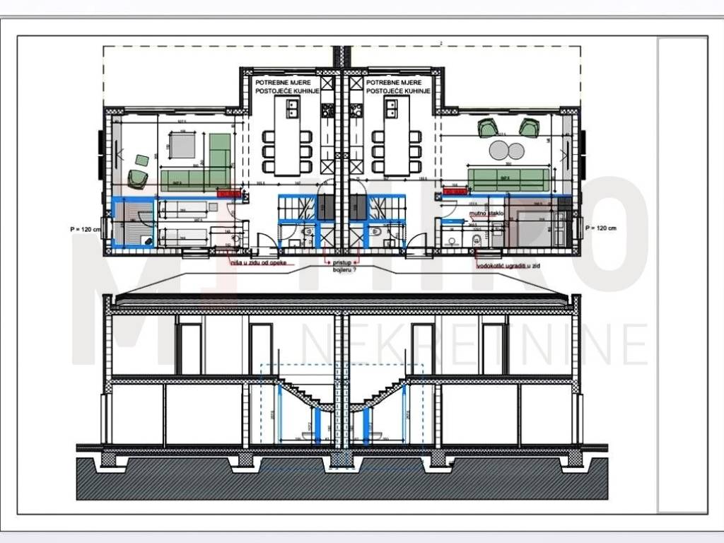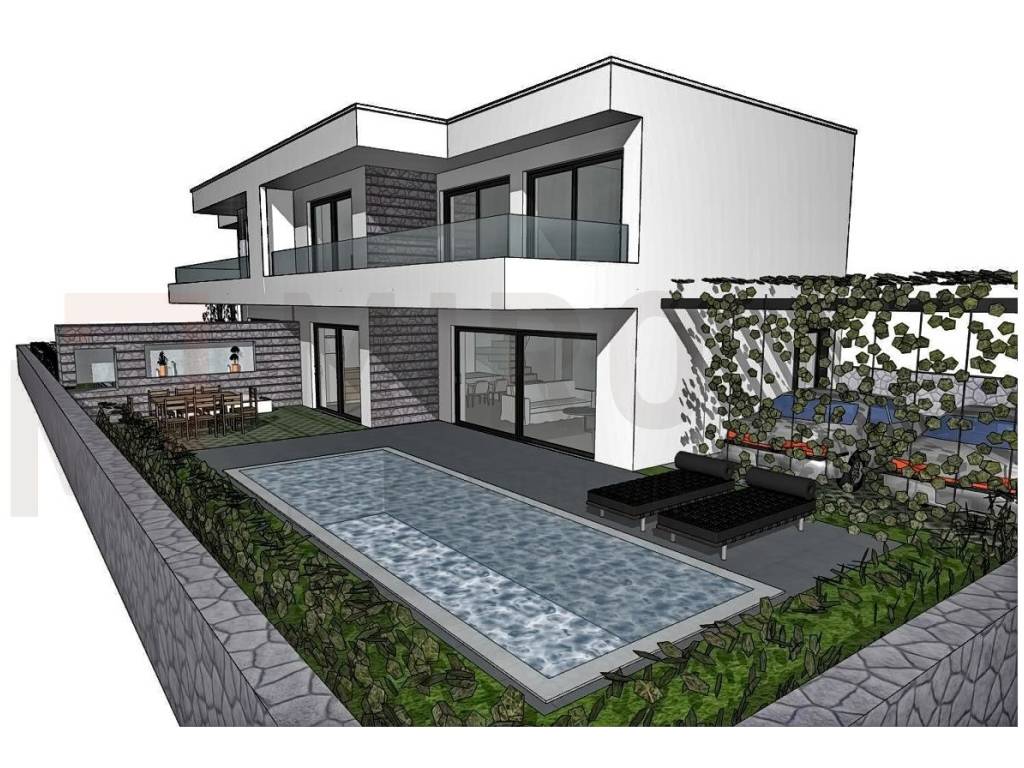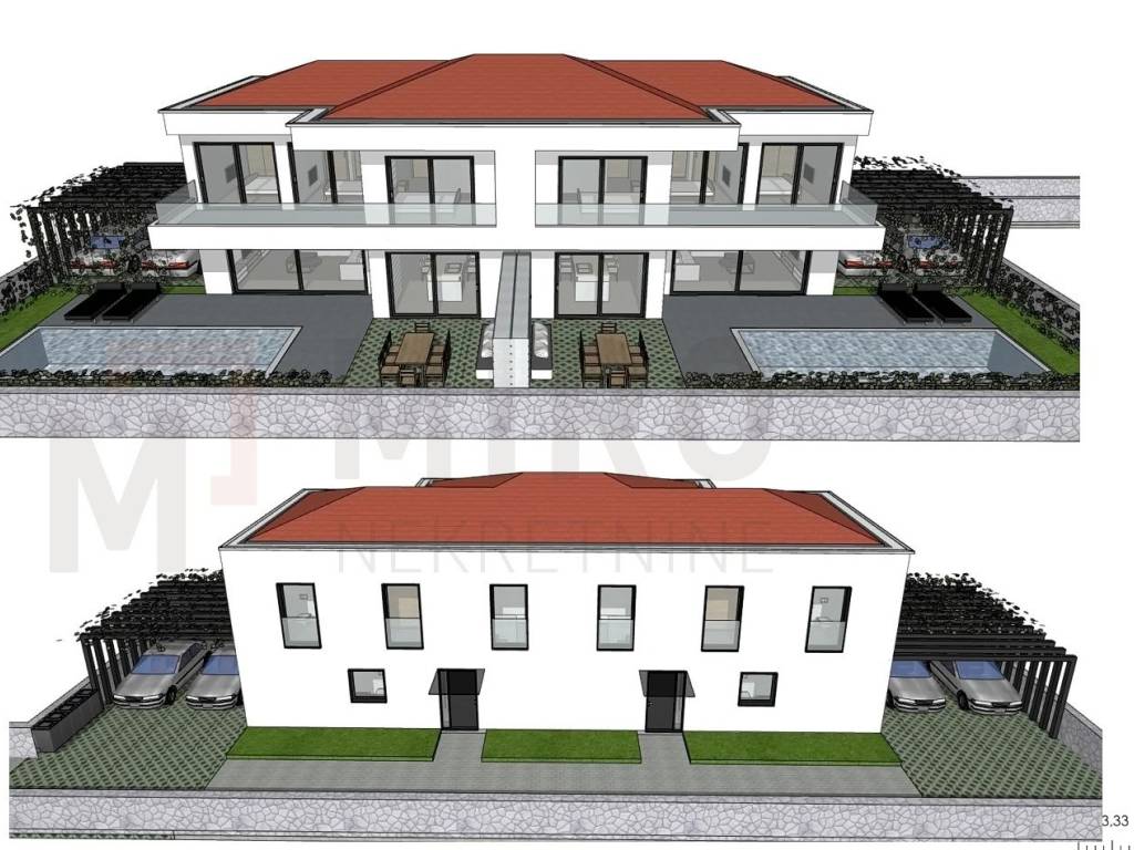 The island of Krk, Malinska, wider area, the agency offers a semi-detached house under construction. The modern house consists of a total of 2 floors. The house occupies a total area of 148.83 m2. This area contains a living room and kitchen, a bathroom, a bedroom, a toilet and a covered terrace on the ground floor and 3 bedrooms, 2 bathrooms and a terrace on the first floor. The ownership of the described real estate includes a beautifully landscaped garden with a swimming pool and a landscaped area for relaxation. Two cars can be comfortably parked in the garden of the property. The house will have a nice view of the sea from the first floor. Real estate is the property of a natural person and the transfer of its ownership is subject to real estate transfer tax in the amount of 3%. The seller guarantees proper ownership documents. The planned completion of the works is the summer of 2024. Visit us and find the square footage of your home!