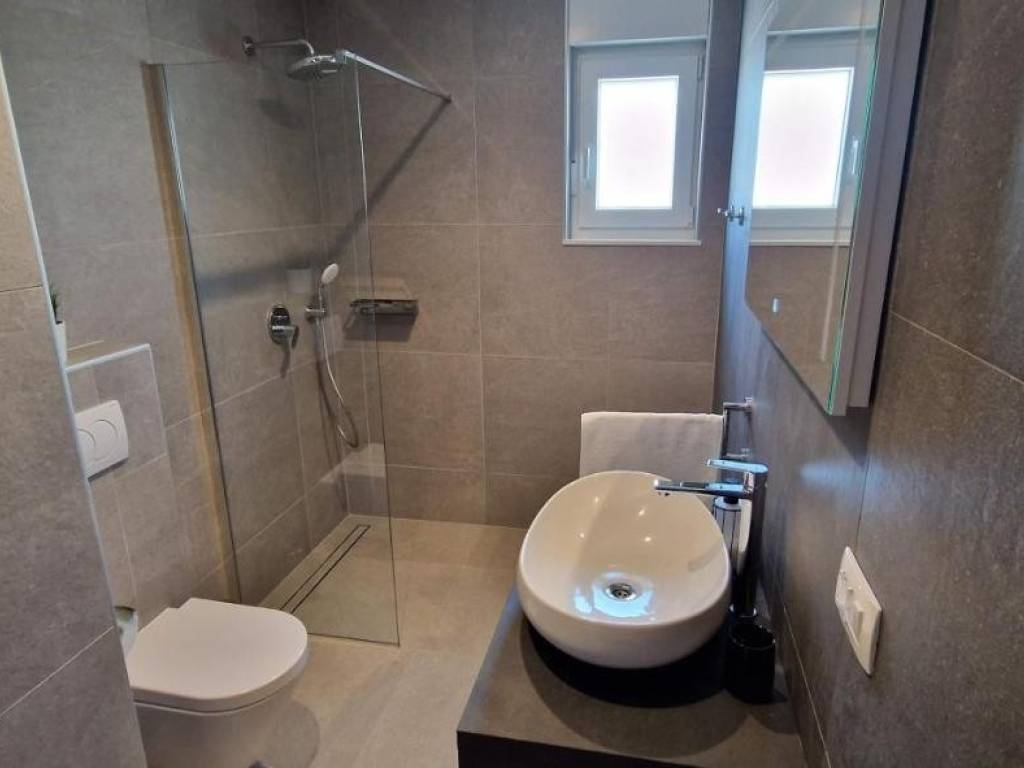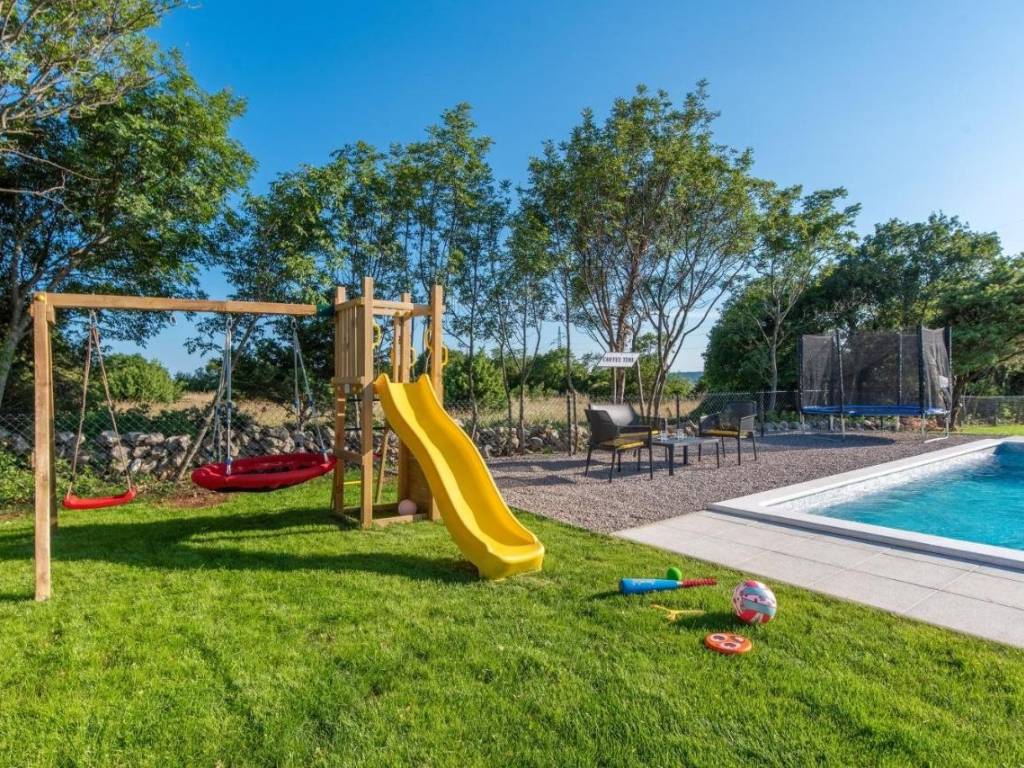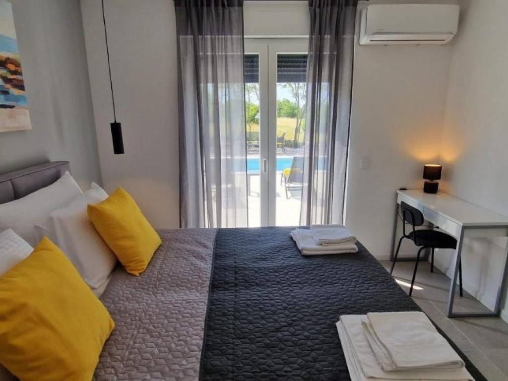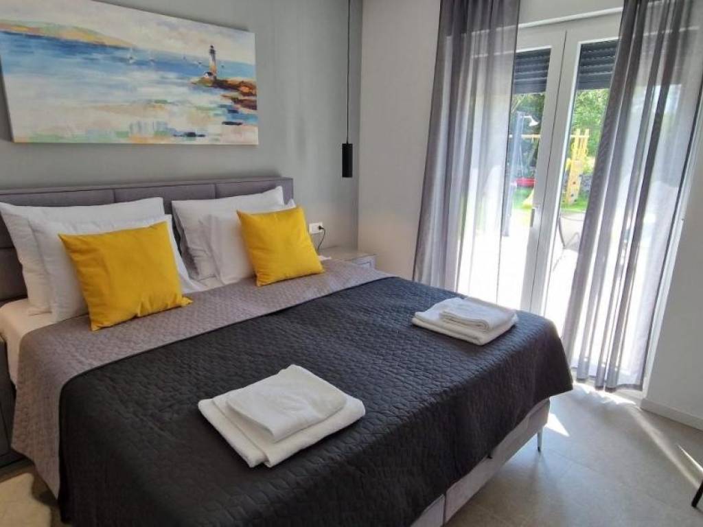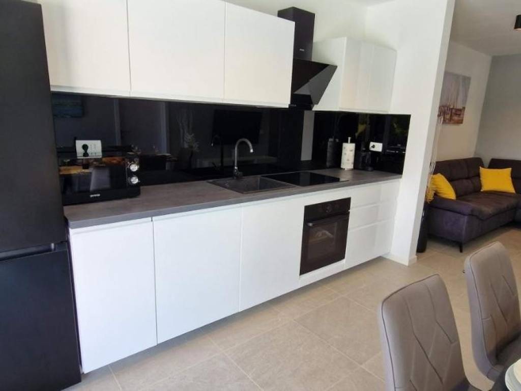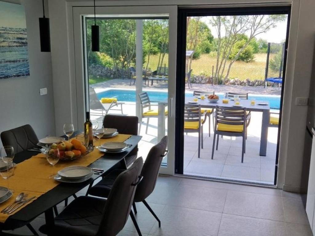 Near Labin, there is this nice prefab house of 87 m2 with a swimming pool, surrounded by nature and with a well-established rental business. It is located in a quiet settlement, only three kilometers from the sea and beaches. It consists of a living area with a kitchen, a dining room and a living room connected to the outside space by glass walls, two bedrooms, two bathrooms and a storage room. Heating/cooling of the house is provided by air conditioners, and there is an opening for a fireplace in the living room. Next to the house, there is a 21 m² swimming pool with a paved sunbathing area and a children's playground in the fenced and landscaped garden. The house is in the phase of obtaining a use permit. More on request.