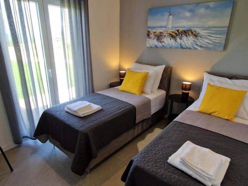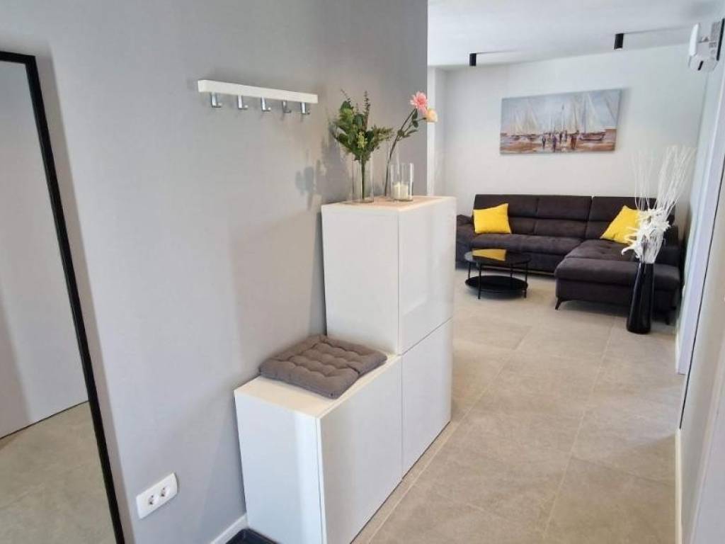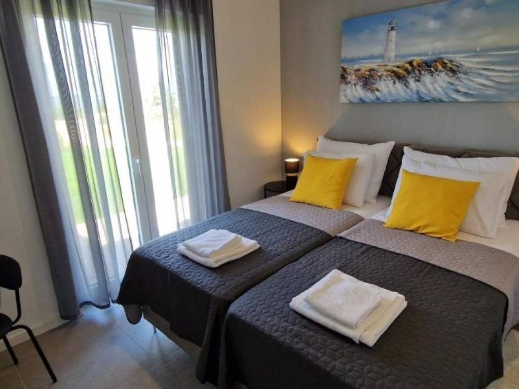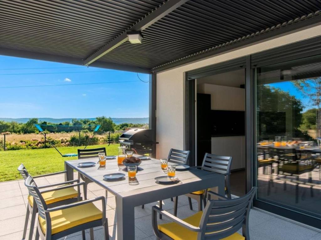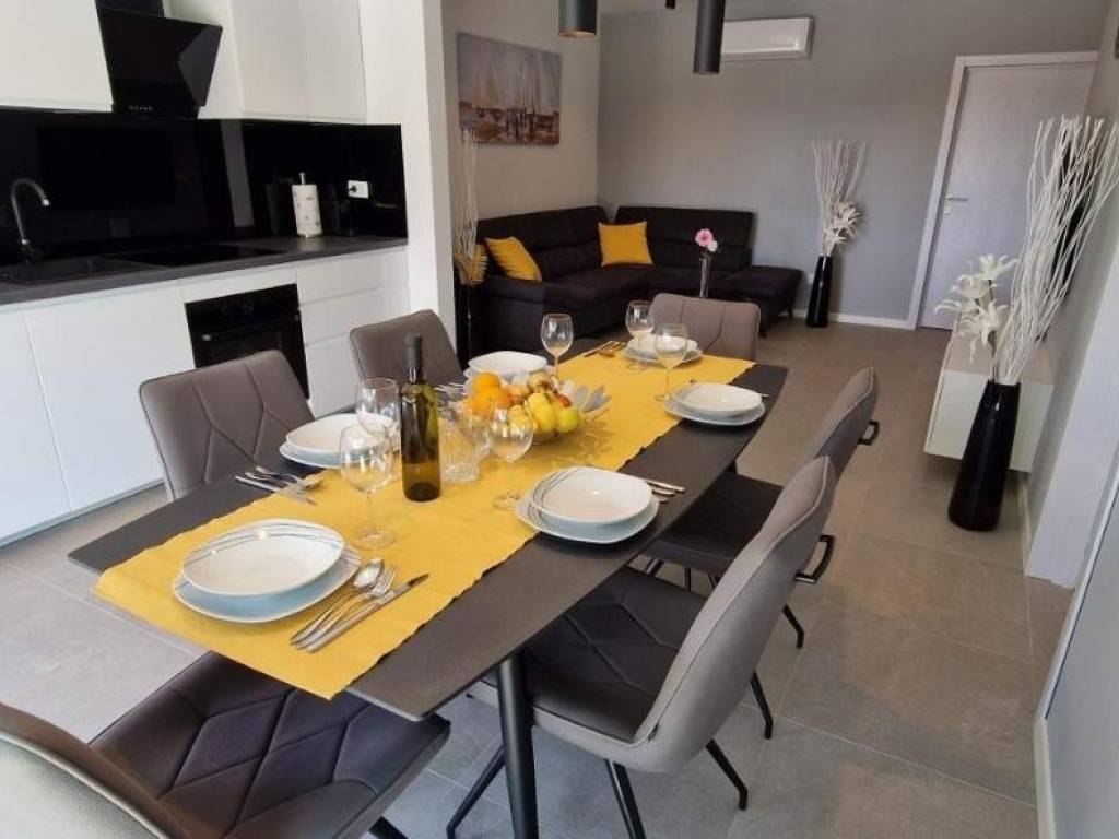 Near Labin, there is this nice prefab house of 87 m2 with a swimming pool, surrounded by nature and with a well-established rental business. It is located in a quiet settlement, only three kilometers from the sea and beaches. It consists of a living area with a kitchen, a dining room and a living room connected to the outside space by glass walls, two bedrooms, two bathrooms and a storage room. Heating/cooling of the house is provided by air conditioners, and there is an opening for a fireplace in the living room. Next to the house, there is a 21 m² swimming pool with a paved sunbathing area and a children's playground in the fenced and landscaped garden. The house is in the phase of obtaining a use permit. More on request.