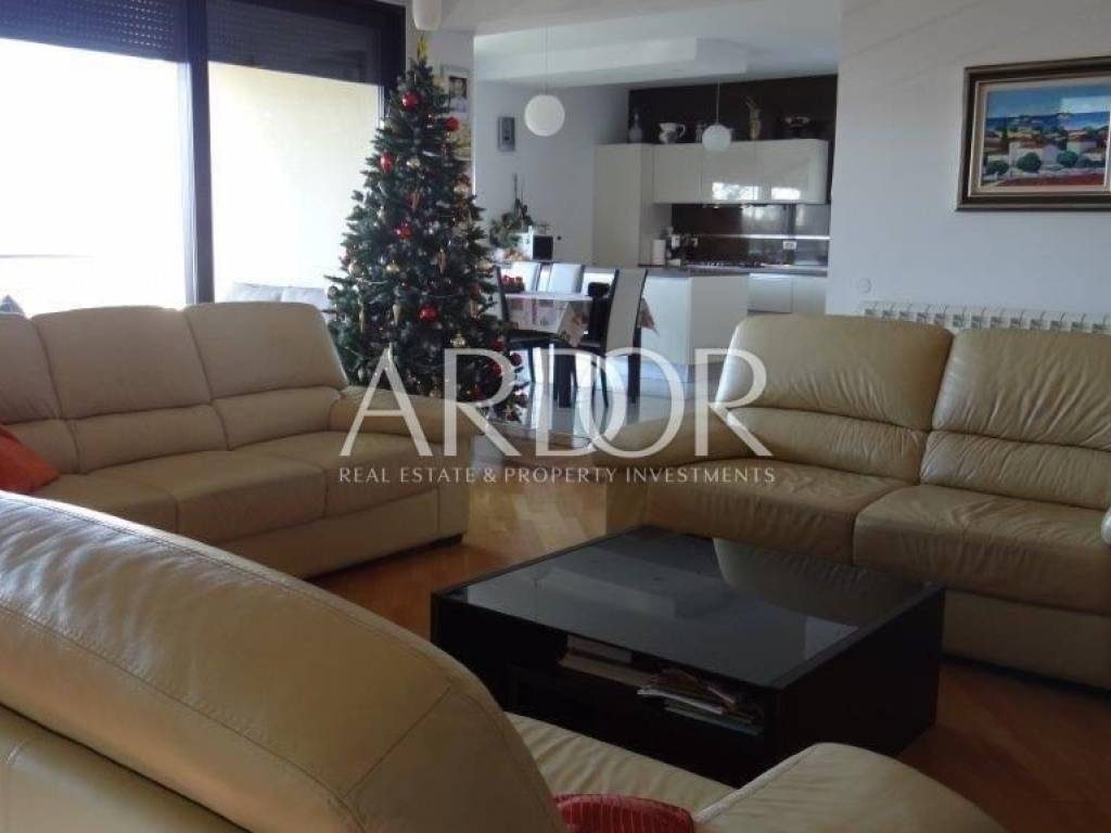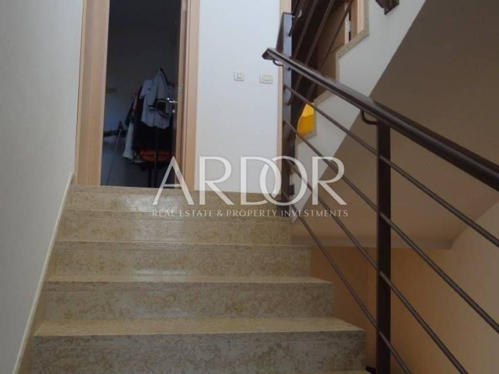 On the ground floor of the house there is a garage for two cars and one residential unit with an area of ​​60 m2, which consists of a living room, two bedrooms and a bathroom with a toilet. The first floor of the house consists of a kitchen with a dining room and a spacious living room (35m2) that opens onto a covered terrace with a beautiful view of the sea. On the second floor, there are three bedrooms with a view of the sea, two bathrooms with a toilet and a laundry room.
