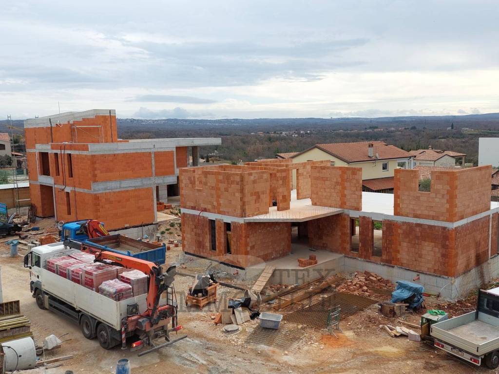 The villa has been built and equipped to the highest standards: underfloor heating is provided via a heat pump, air conditioning units are installed in every room, aluminum joinery in anthracite color with triple-glazed windows is used, and the solid masonry structure consists of 25 cm brick with an additional 10 cm of thermal insulation. The property is equipped with an alarm system and video surveillance in the first phase of installation, and the upper floors offer a beautiful sea view.