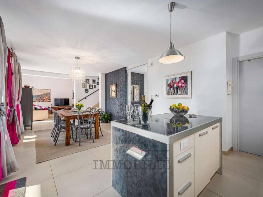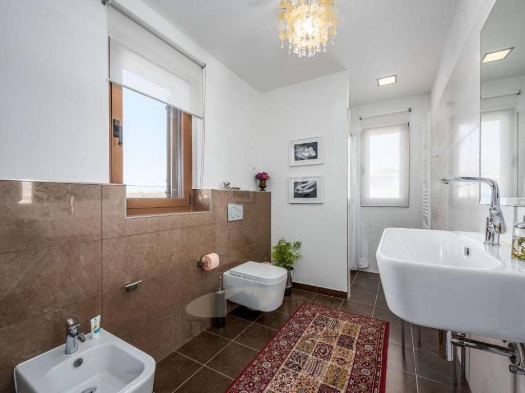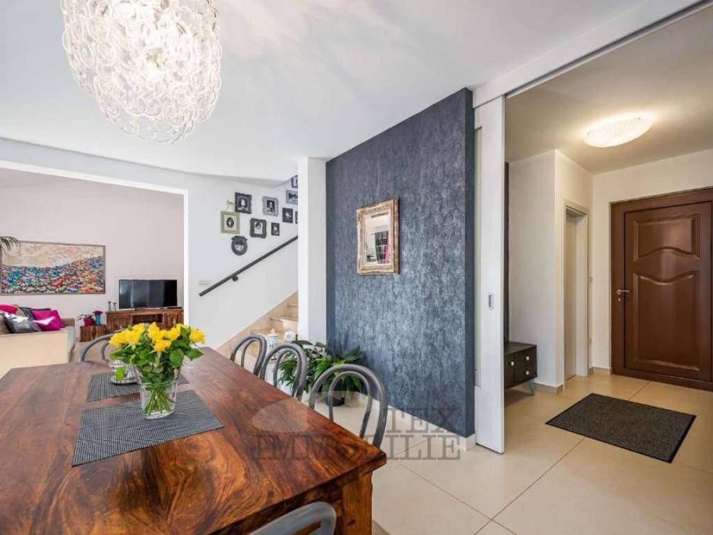 Additionally, the house has solar panels for domestic hot water and a 3.7 kW photovoltaic solar power plant, ensuring electricity production and enhanced energy independence.