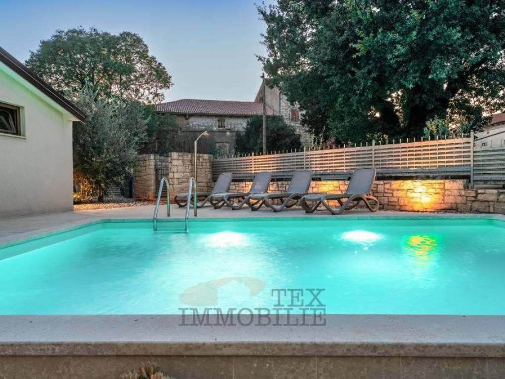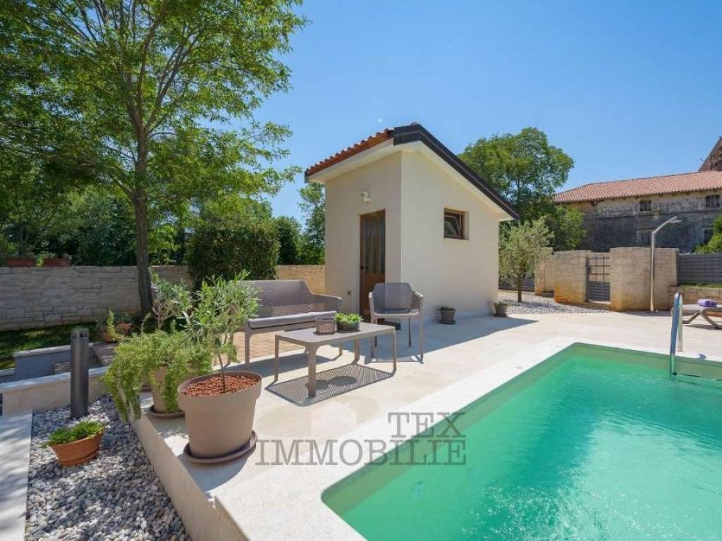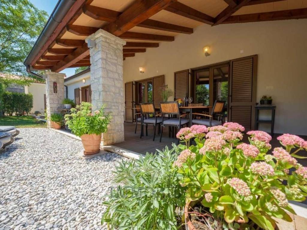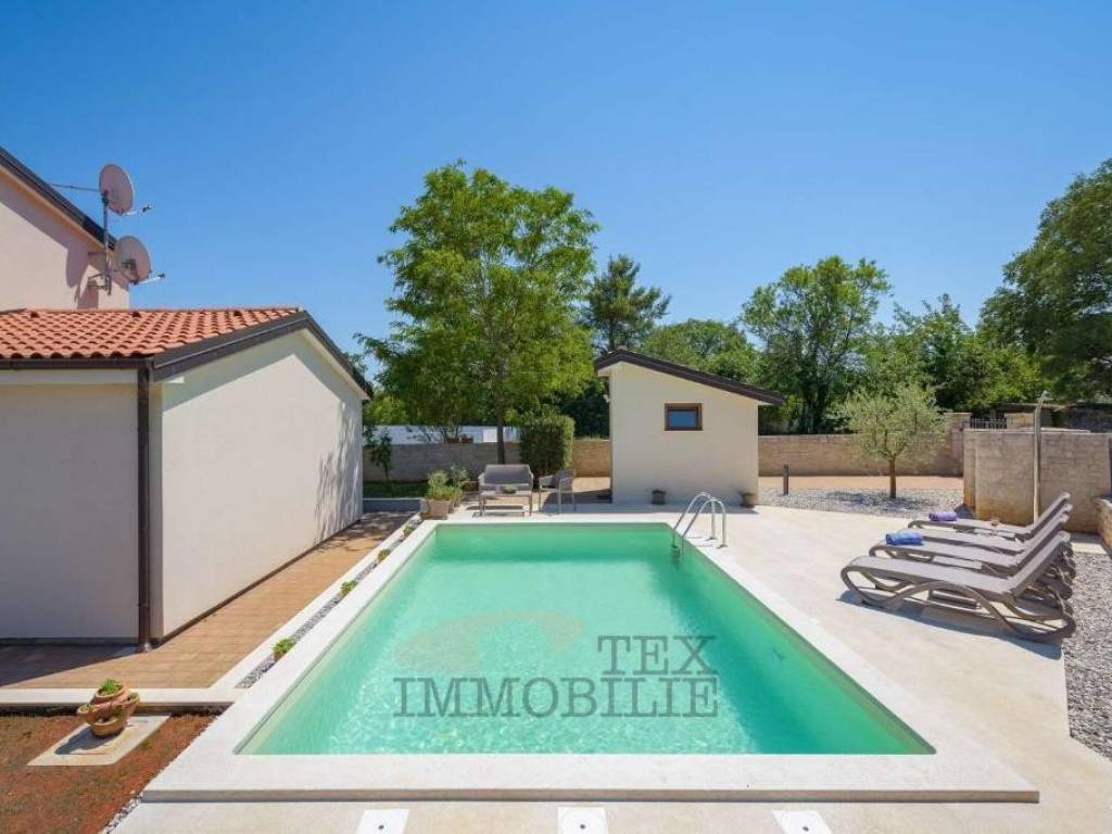 A high-quality detached house with a swimming pool is for sale, located in a quiet area near Poreč, just 10 km from the town center and the sea.