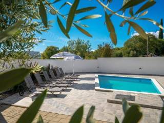 A spacious and modern house for sale in a quiet location! This charming 170 m² house consists of a ground floor and a first floor, ideal for family living or vacation. The first floor features four spacious bedrooms, each with its own private bathroom and access to a terrace, offering extra comfort and privacy. The ground floor, connected by an internal staircase, has an open-plan living room, kitchen, and dining area with direct access to the landscaped yard. There is also a storage room and guest toilet on the ground floor.The 403 m² yard is equipped with a 15 m² pool, sunbathing area, outdoor shower, barbecue, and a comfortable outdoor seating area. The house is sold fully furnished, with all furniture included in the price.It comes with three parking spaces. Located in a quiet area surrounded by family homes, it’s ideal for those looking for peace and privacy, yet close to all amenities.