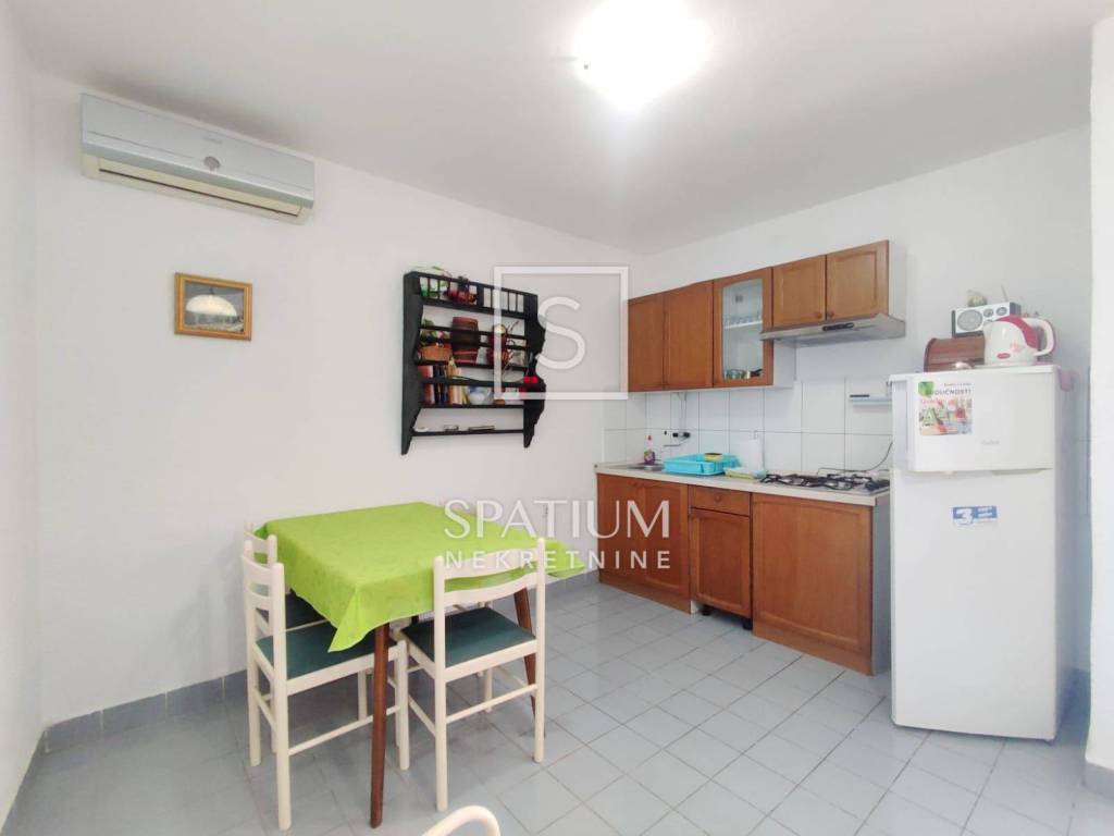 JADRANOVO, we are offering an apartment house in an attractive location, 500 m from the sea. It consists of two separate buildings separated by a courtyard hidden from view. The main building consists of three one-room apartments, each of which consists of an entrance hall, a bedroom, a kitchen with a dining room and a bathroom with a toilet, and a separate boiler room on the ground floor. The auxiliary facility consists of two separate studio apartments. The outdoor part of the yard with a grill is ideal for relaxing and resting. All units are air-conditioned and have oil-fired central heating. With some refreshing of the interior, this house has a distinct tourist potential. Jadranovo is a tourist resort nine kilometers from the town of Crikvenica, to which it administratively belongs along with Dramalj and Selce. The day of the place is celebrated on July 25, on the feast day of its heavenly patron, St. James the Apostle. Tourism is the main economic branch of Jadranovo. Although Jadranovo does not have hotel facilities thanks to private accommodation, up to three thousand guests can stay in furnished rooms and apartments. In the summer, fun events such as traditional fishing parties are organized. For other information, please contact us with confidence.