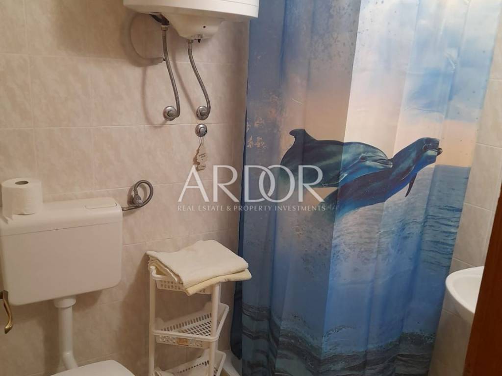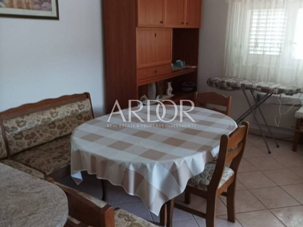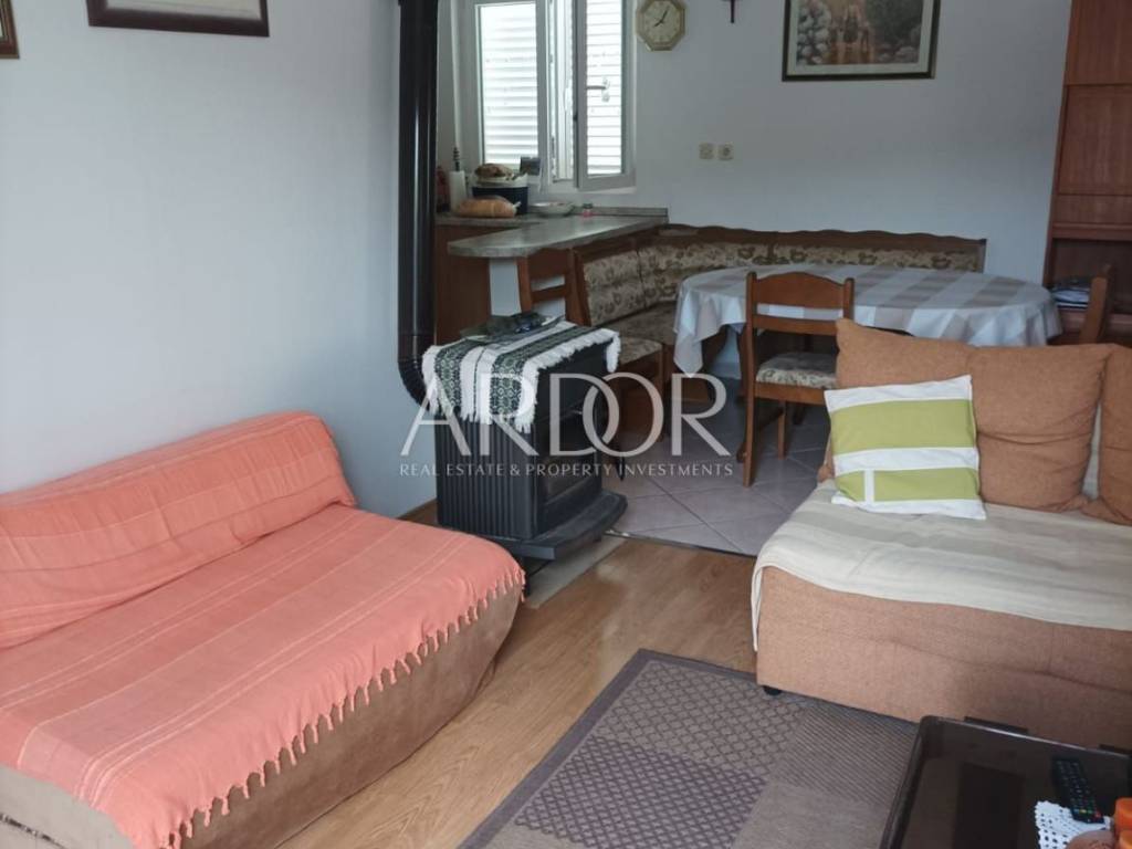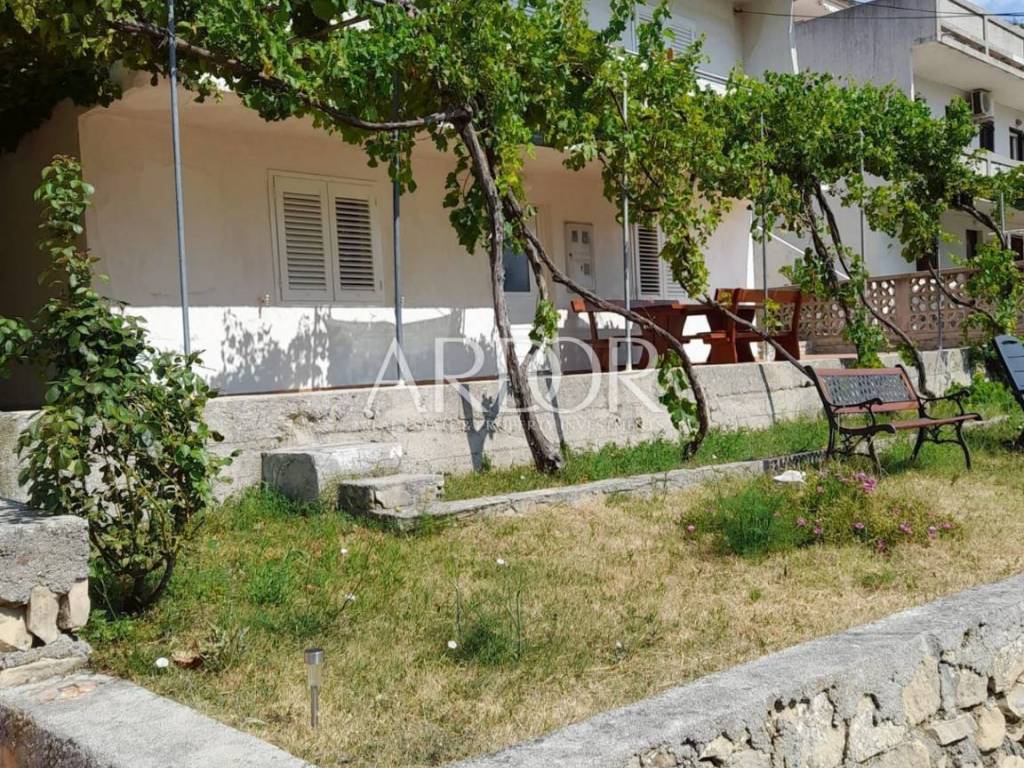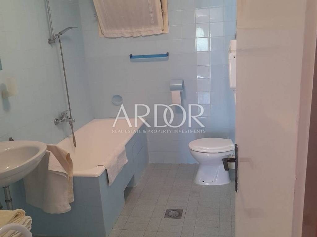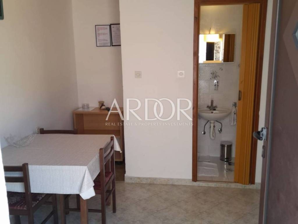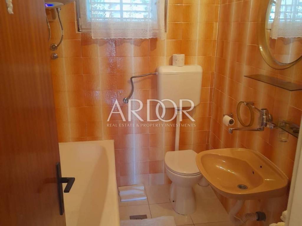 On the ground floor of the house there is a tavern that serves as a storage room, a tool room and a laundry room. There are five parking spaces next to the house, and there is a barbecue in the yard. The house is located in a beautiful cove with a sandy beach, surrounded by greenery in the immediate vicinity of the sea, which is reached by a private path. It consists of five apartments, three two-room and two one-room, and represents an exceptional potential for the further development of an established family tourist business.