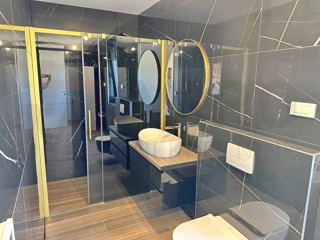 Island of Krk, city of Krk, sale of a two-story apartment in a new building with a roof terrace and a swimming pool. The apartment is located in a residential building with a total of 4 residential units. Two-story apartment of 160m2 on the 1st floor consists of an entrance hall, two bathrooms, and 3 bedrooms with access to a covered balcony with an open view of the sea. An internal staircase leads to the 2nd floor, which consists of a toilet, a kitchen with a dining area and a spacious living room with access to a terrace with a wonderful view of the sea. An external staircase leads to the roof terrace with a swimming pool and sun deck. The property is characterized by excellent construction, a modern project, high-quality aluminum joinery, a heat pump, air conditioning in all rooms. The apartment has 2 parking spaces in the garden of the building. The real estate is owned by a natural person and the buyer is obliged to pay real estate sales tax in the amount of 3%. The owner guarantees a quick transfer of ownership to the new buyer. Visit us and find the square footage of your home!