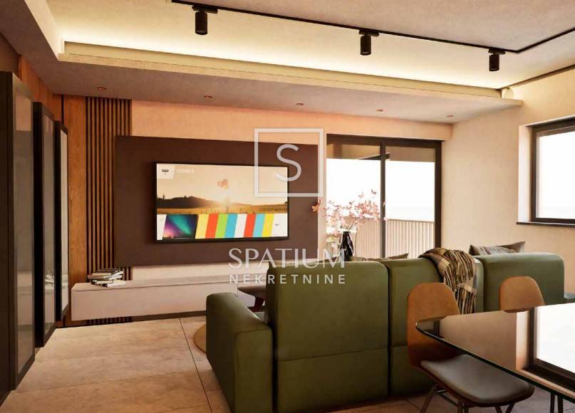 REŠETARI, KASTAV, we offer an apartment in a new building with an area of 78.06 m2. It consists of an entrance hall, a living room with a kitchen and a dining room that opens onto a loggia, a bathroom and two bedrooms.