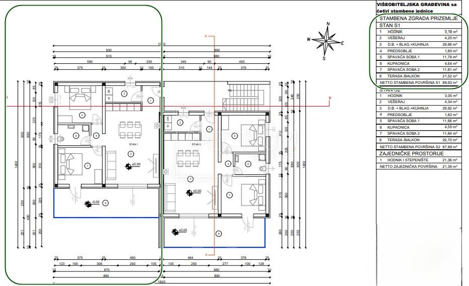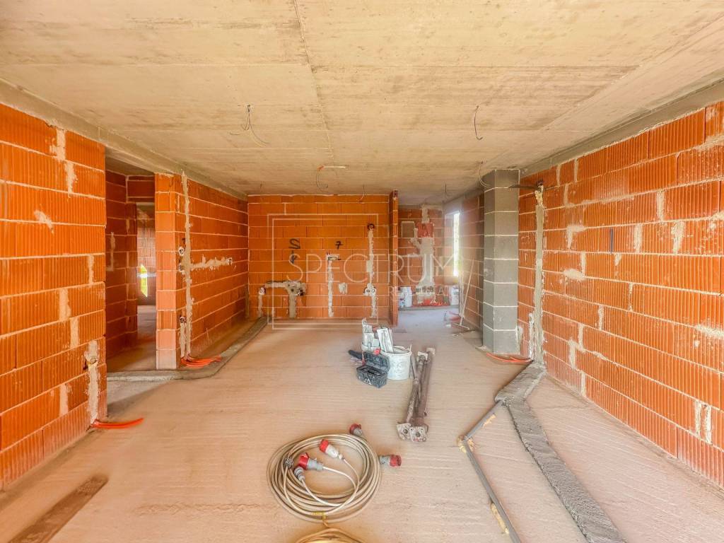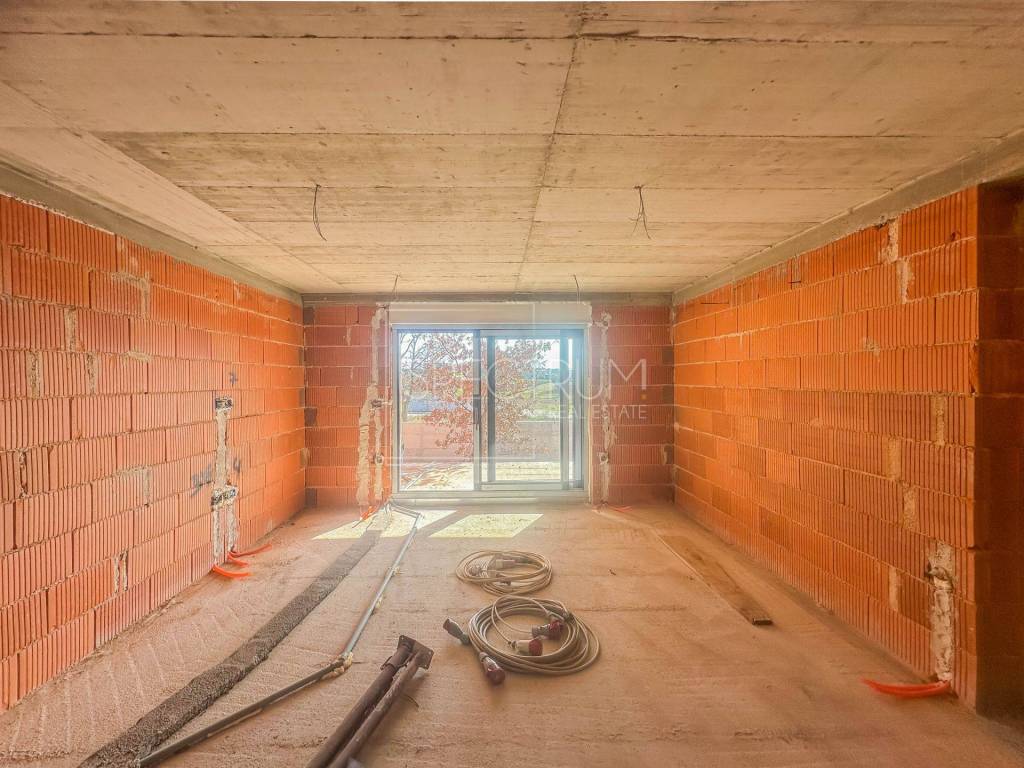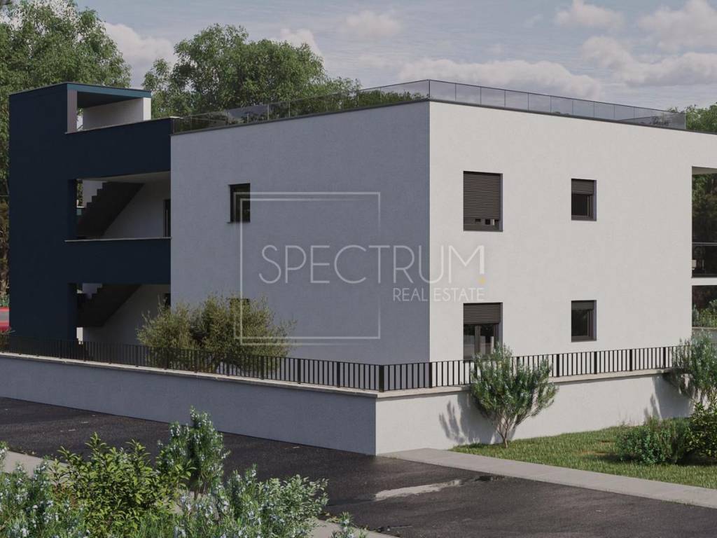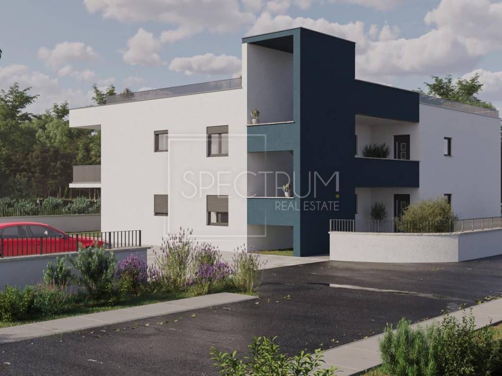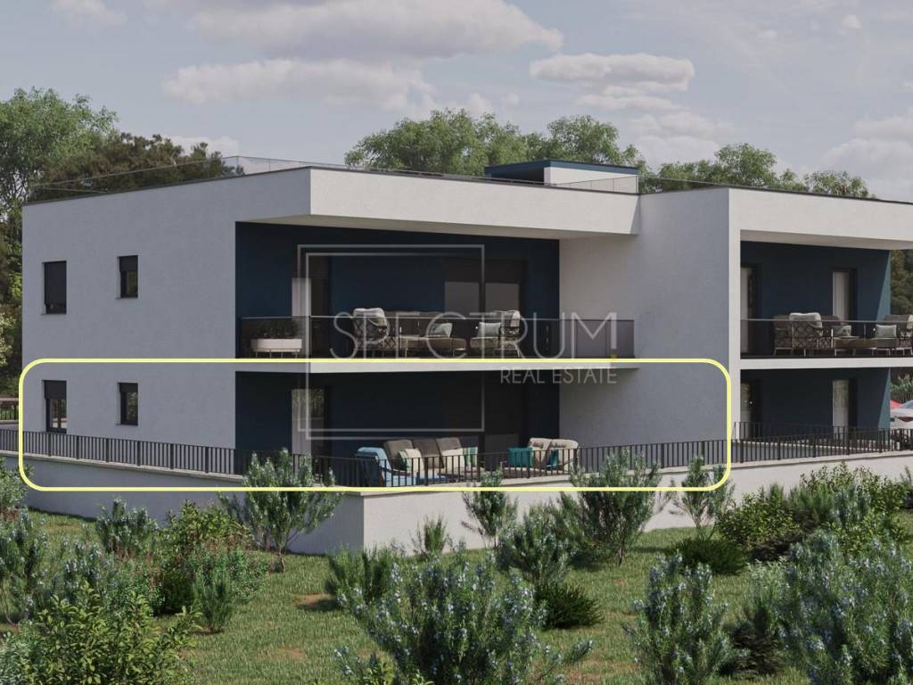 The apartment is located on the ground floor of a newly built smaller residential building with 4 residential units. The gross area of ​​the apartment is 88.60 m2, while the net area of ​​the apartment is 77.84 m2. The apartment consists of an entrance hall, open space living room with kitchen and dining room, hallway, 2 bedrooms, bathroom, pantry/laundry room and covered spacious terrace, ideal for enjoying and socializing outdoors. From the terrace you can reach the large and fenced garden of 130 m2. The layout of the rooms in the apartment is excellent, and practically every part of the apartment is used. The apartment is heated by air conditioning and underfloor heating. The apartment is sold in the turnkey phase (finished floors and sanitary facilities, without furniture). The apartment also owns the parking lot, which is right next to the building.