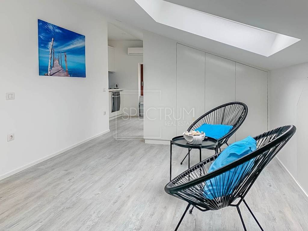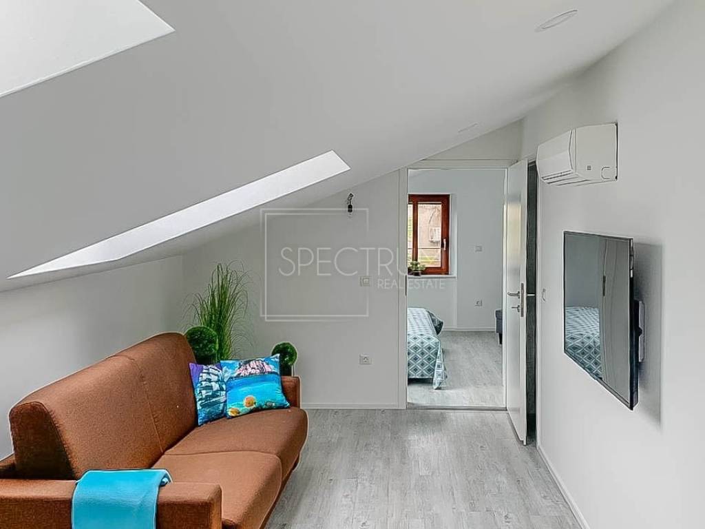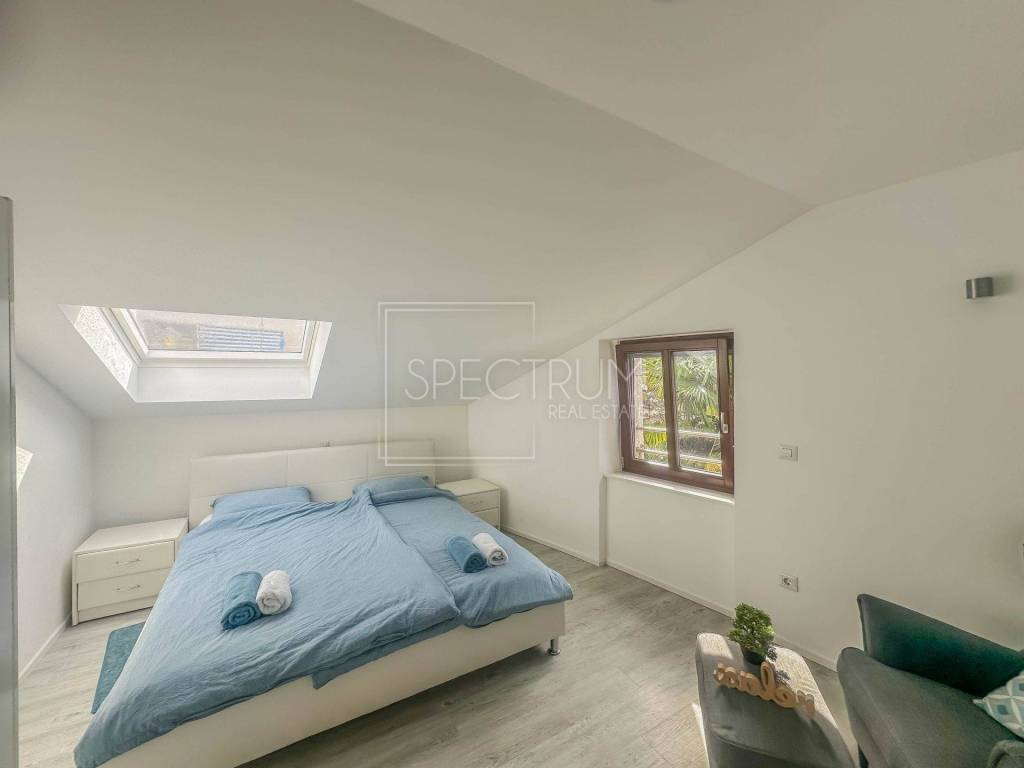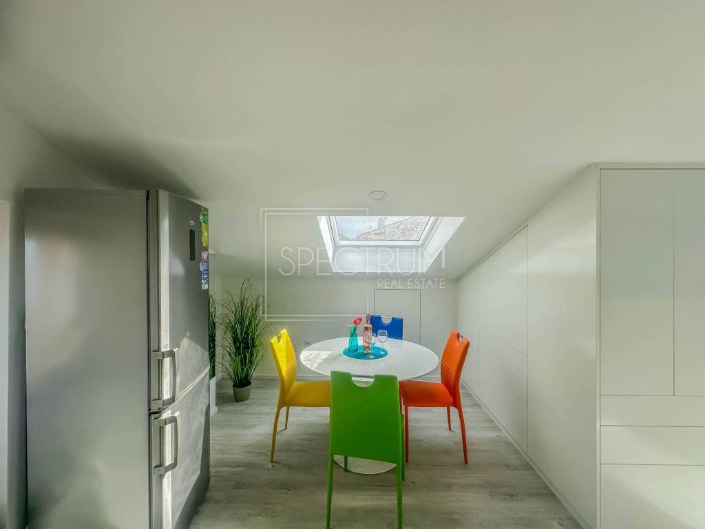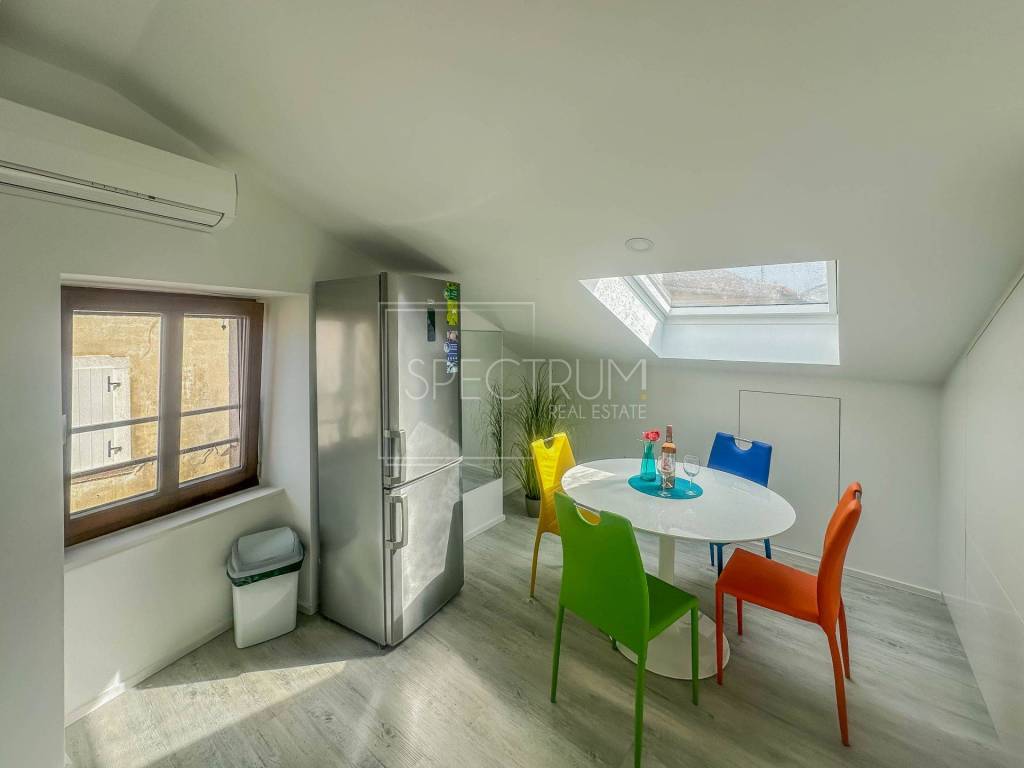 The apartment is located on the 2nd floor of a smaller residential building with 3 residential units. The area of ​​the apartment is 81.02 m2. The apartment consists of a living room, a kitchen with a dining room, a bedroom, a bathroom and a staircase. The apartment is heated by underfloor heating and air conditioning. The apartment was completely renovated in 2017. Quality materials and custom-made furniture were used in the renovation. A video intercom was also installed. The apartment is sold furnished.