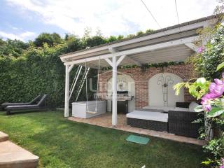 The landscaped yard hides a lush lawn, a multitude of fragrant herbs and flowers, a covered summer kitchen with a barbecue area, and there is also a storage room and covered parking for two cars. Each apartment has a separate entrance to the yard, which further contributes to the feeling of privacy.