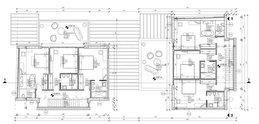 Not far from the center, within walking distance, an exclusive villa is for sale, which according to the project consists of two interconnected units with a total area of 670 m2.