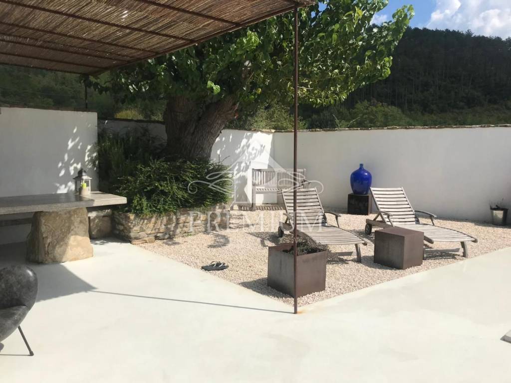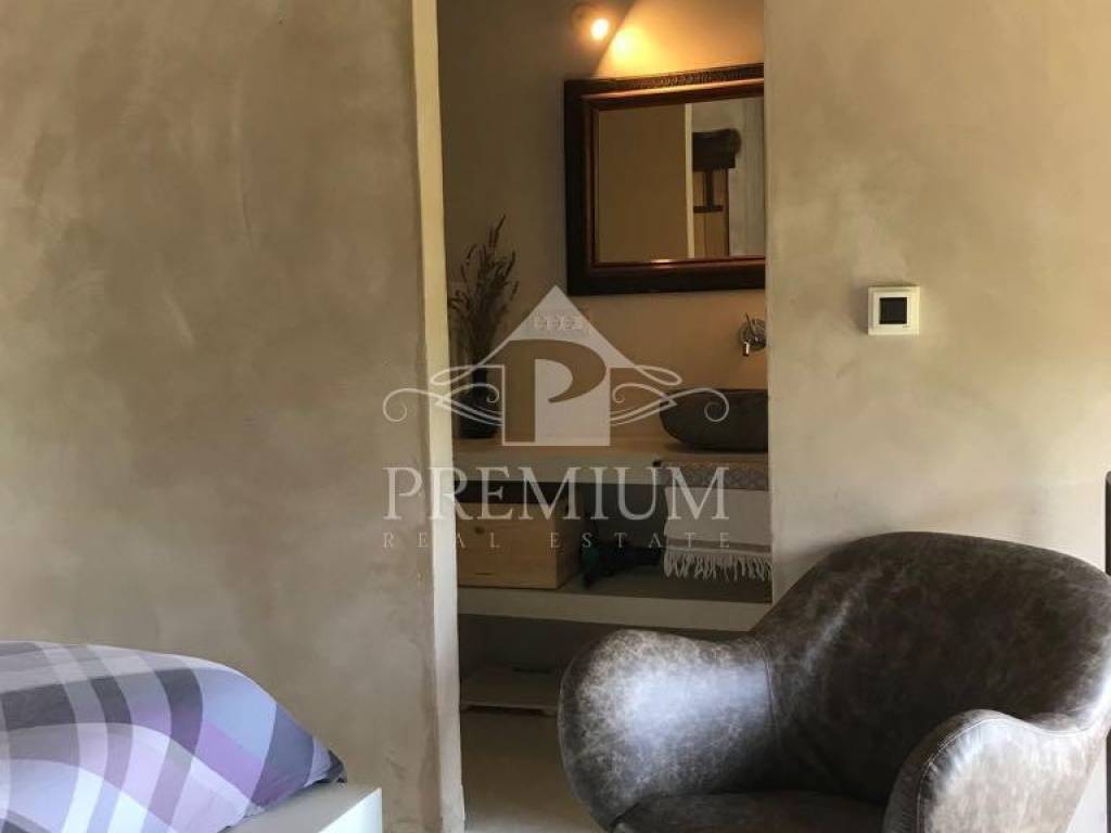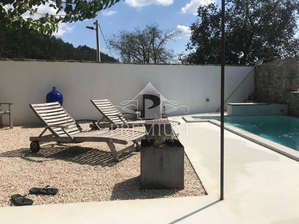 We are selling a renovated Istrian stone house located in a small village in the center of Istria close to all major Istrian cities. The house consists of a ground floor with a living room, kitchen and dining room, while upstairs there is a bedroom and a bathroom. The property also has a swimming pool and a sunbathing and entertainment area offering a beautiful view of Motovun and the nearby meadows and nature of Istria. The house has a solution for catering and belongs to the category of holiday homes with a categorization of 4 (****) stars.