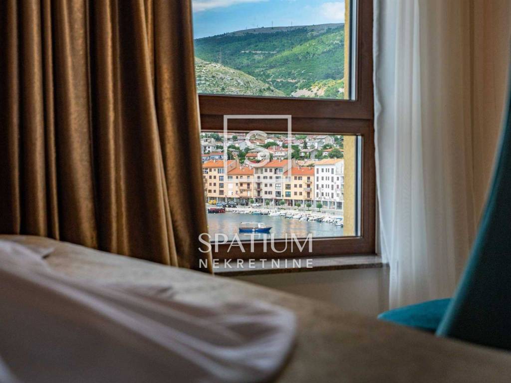 SENJ, u ponudu smo dobili prekrasan novosagrađeni hotel (2019. godine) prvi red do mora. Smješten je na parceli od 558m2 te se sastoji od prizemlja, prvog i drugog kata te potkrovlja, ukupne kvadrature 1050m2. U prizemlju se nalazi prekrasna natkrivena i otkrivena terasa sa otvorenim pogledom na more, recepcija, restoran, kuhinja, skladište, toaleti za goste i osoblje te dizalo koje vozi do drugog kata. Na prvom i drugom katu se nalazi ukupno 12 moderno uređenih soba sa kupaonicama koje su klimatizirane i opremljene visokokvalitetnim namještajem, mini barovima, velikim LCD televizorima i svom potrebnom opremom za ugodan boravak. U potkrovlju se nalaze još dvije sobe za goste te ured sa terasom, vešeraj, arhiva, prostorija sa serverom i ormarima za spremanje posteljine te pomoćna soba i zasebno kupatilo. Hotel je gradila renomirana tvrtka (GP Krk) te su korišteni samo vrhunski materijali. Keramika je Marazzi i Caesar, ugrađena stolarija je sa toplinskom i zvučnom izolacijom te je postavljena termo fasada. Na samom ulazu u hotel je postavljena i rampa od parkinga do recepcije za lakši ulaz osobama sa invaliditetom. Uz hotel je moguće kupiti i Disco Club koji se nalazi ispod hotela na istoj parceli od istog vlasnika.