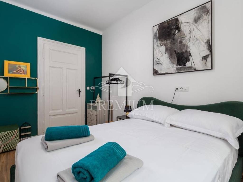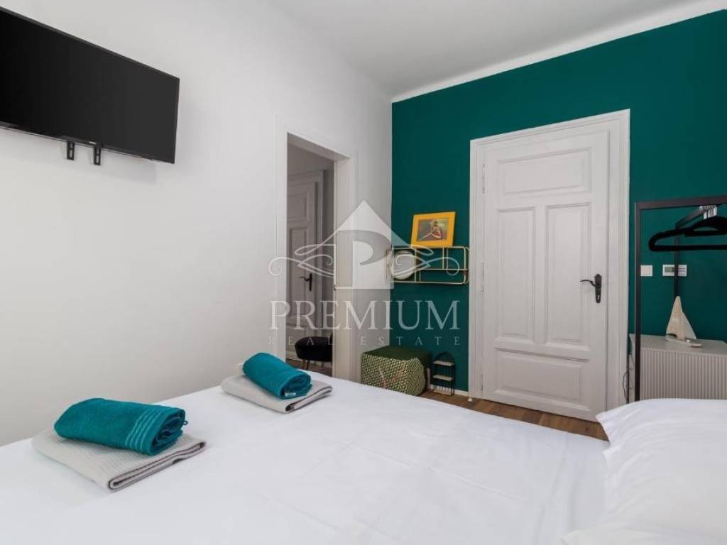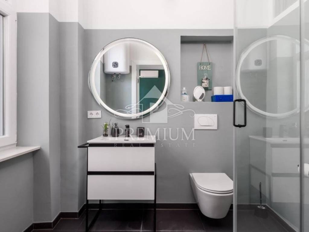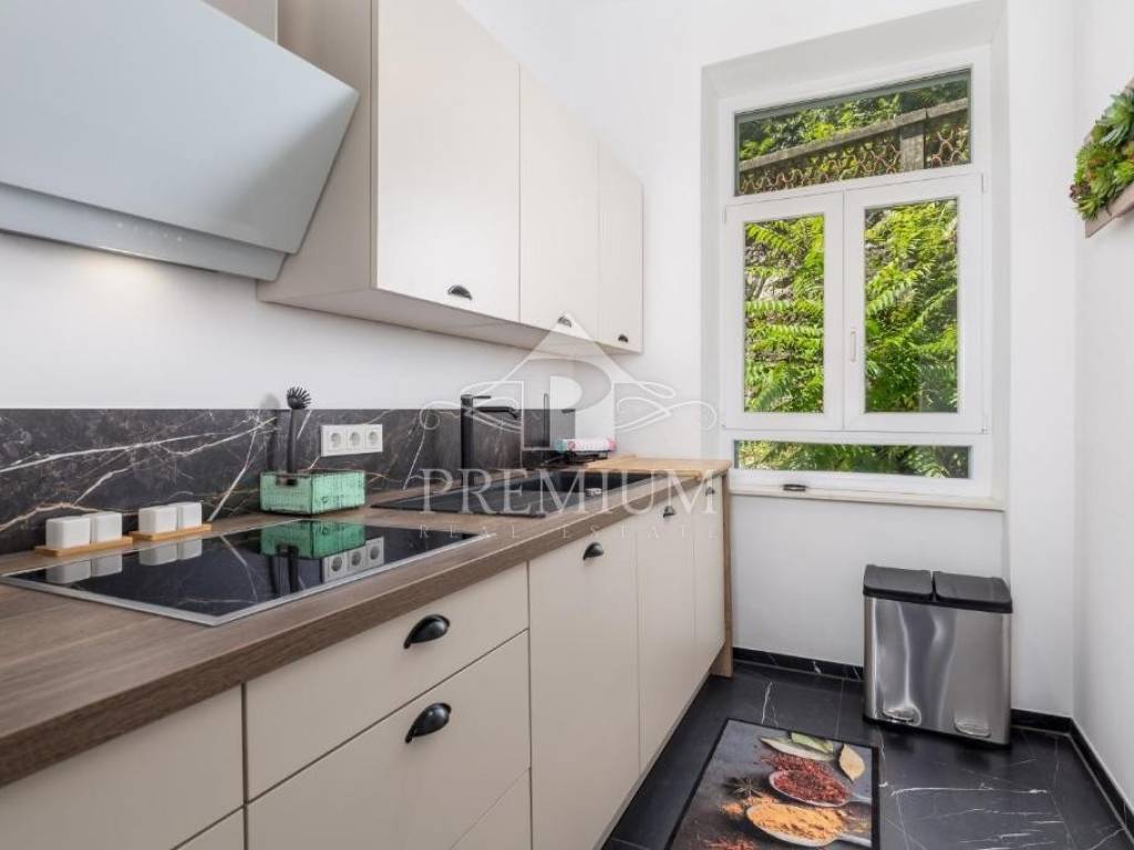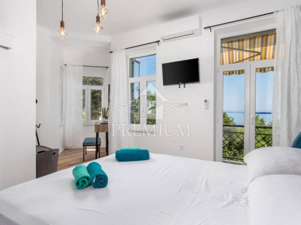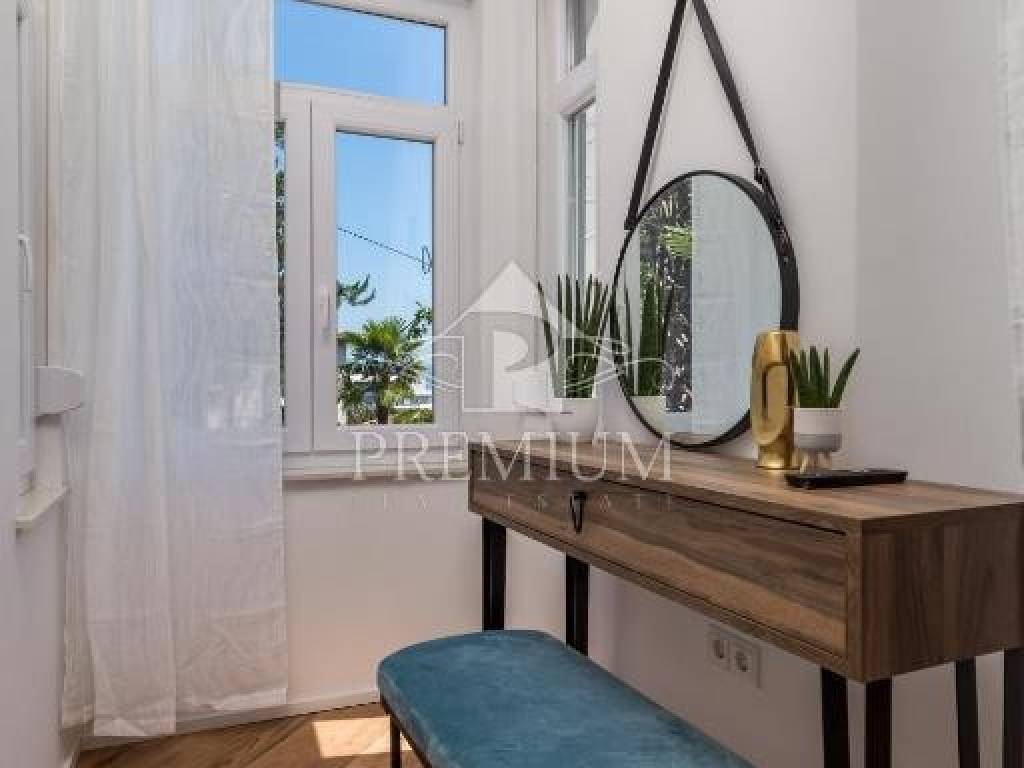 The apartment is located in an old Austro-Hungarian building and was completely renovated in 2022. Spacious, with an area of 105 m2, it consists of a living room with a dining room, a kitchen, 3 bedrooms, 3 bathrooms, a hallway and two balconies with a beautiful view of the sea. It has electric underfloor heating and air conditioning. The apartment is located near the center of Opatija, and only 50 meters from the sea, the famous Lungomare promenade with small beaches, coves and places to enjoy by the sea. All the necessary institutions, from pharmacy, market, market, banks, ATMs, cafes, promenade, are very close and everything can be reached on foot.
