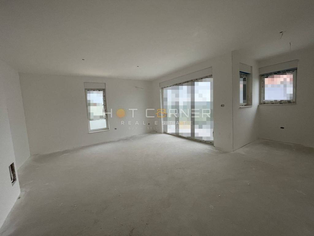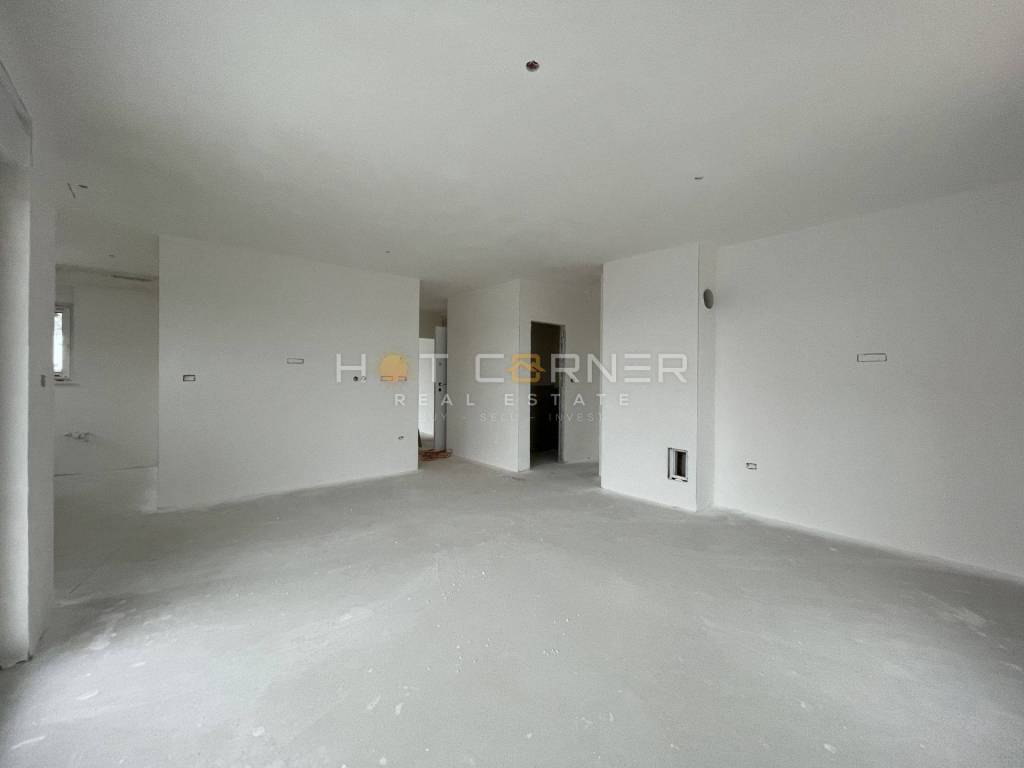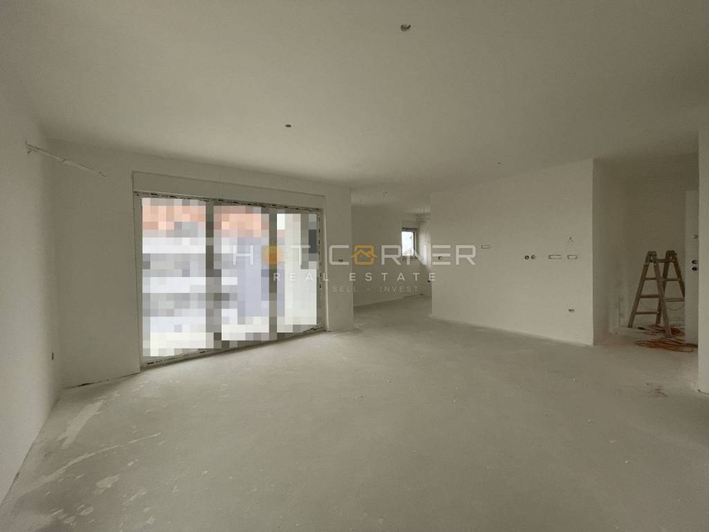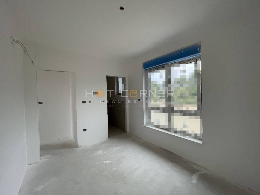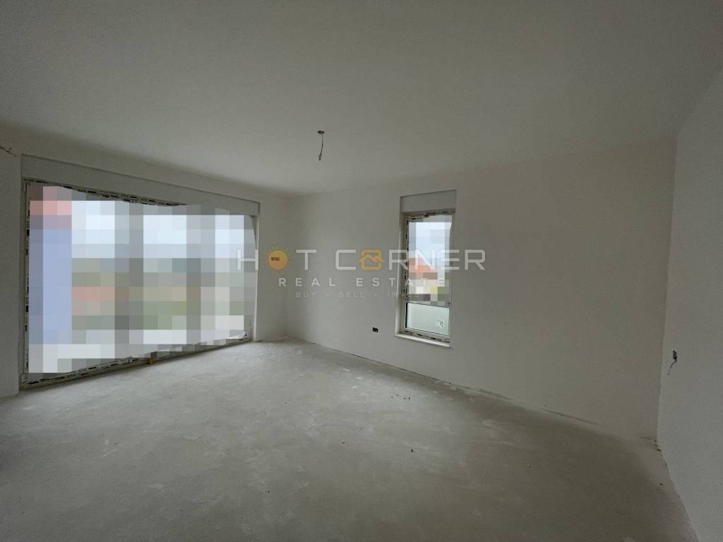 The building is fully constructed with a roof and facade, featuring installed PVC windows with electric blinds and internal walls. The planned completion and move-in date are expected in spring 2024. The apartments will be equipped with anti-burglary entrance doors, inverter air conditioning units (1 in each bedroom and living room, totaling 3 units), underfloor electric heating throughout the apartment, intercom, outlets and switches, TV antenna, and stainless steel railing on the terraces. The bathrooms will be furnished with a walk-in shower with a channel, suspended sanitary ware. The buyer has the option to choose laminate and ceramic tiles.