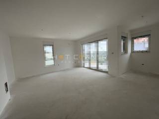 Offering a penthouse on the 2nd floor of a small residential building in Pula, in a quieter neighborhood, the Monvidal/Šijana area. This new construction consists of the ground floor, first and second floors, with each apartment covering one floor. The featured apartment is located on the 2nd floor (top floor) and has a total area of about 105m2, consisting of an entrance hall (4.2m2), a living room (28.56m2), a kitchen with a dining area (9.14m2), a bedroom (10.52m2) with its own bathroom (3.11m2), a bedroom (19.08m2) with its own bathroom (5.8m2), a toilet (2.12m2), and 2 balconies (7.33m2 and 7.04m2).
