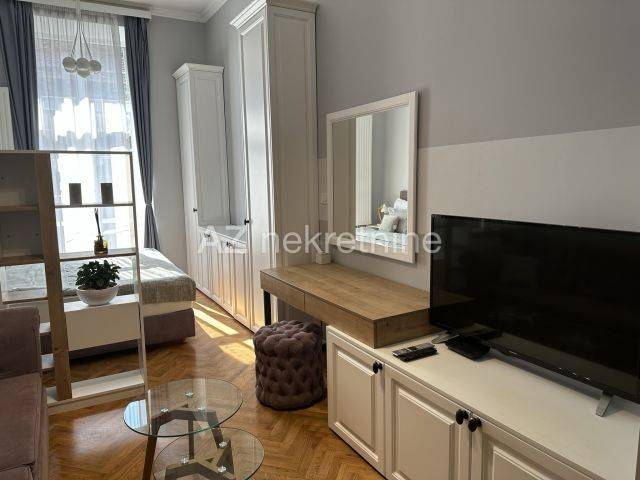 In a prime location near Britanski trg, close to all city amenities and just a 10-minute walk to Ban Jelačić Square, a furnished studio flat facing south is available for rent.