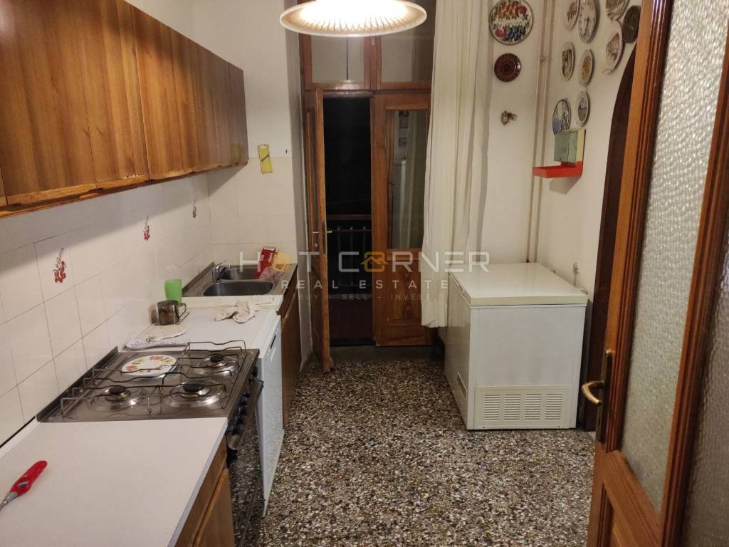 The apartment is equipped with new exterior PVC carpentry, parquet floors in the living room and bedrooms, and ceramic tiles in the rest of the apartment. The apartment has city gas, which is used for cooking and heating on radiators.