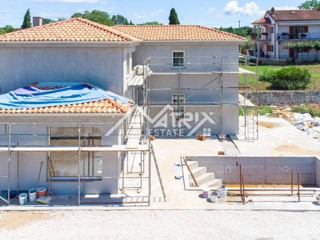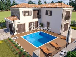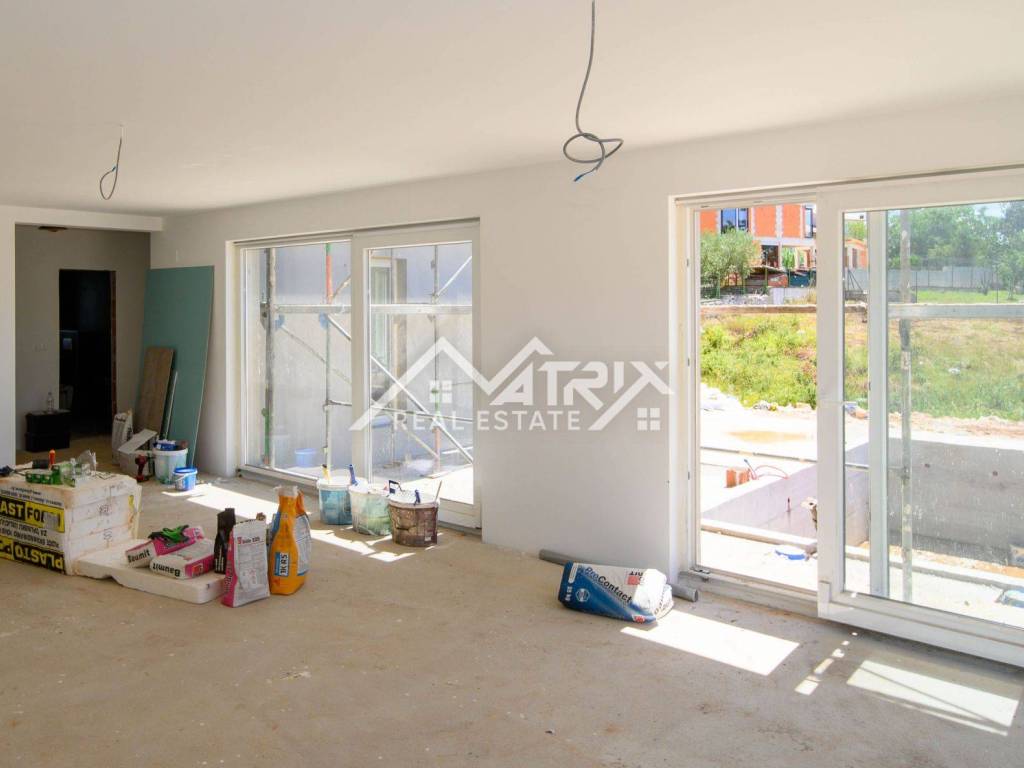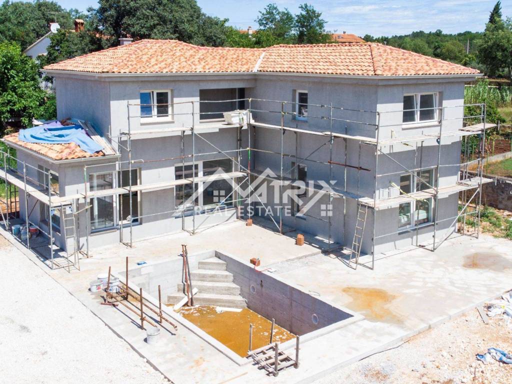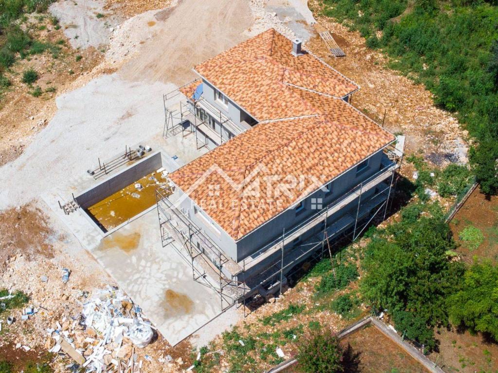 In a quiet village, not far from the city of Poreč and the sea, there is this detached modern house with a swimming pool under construction. The house is spread over three floors: ground floor, first floor and basement, with a total living area of 240 m2.