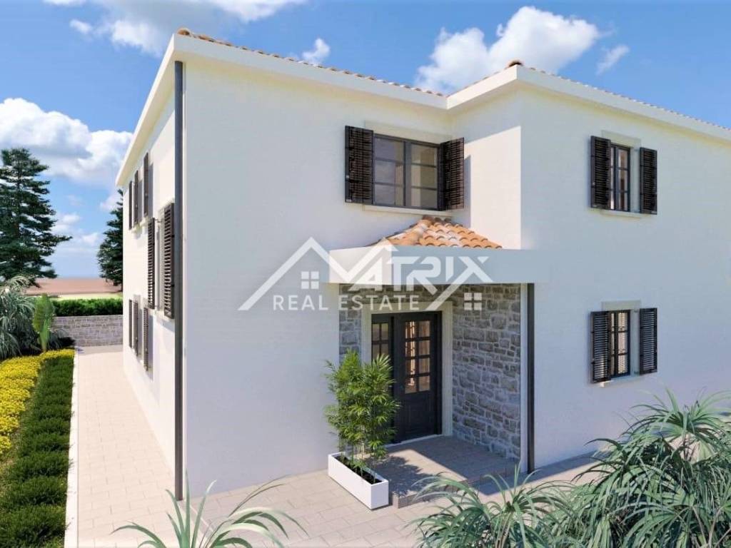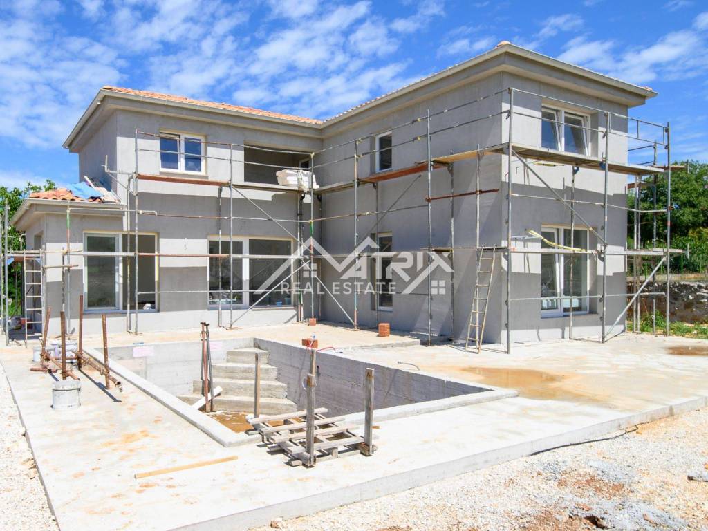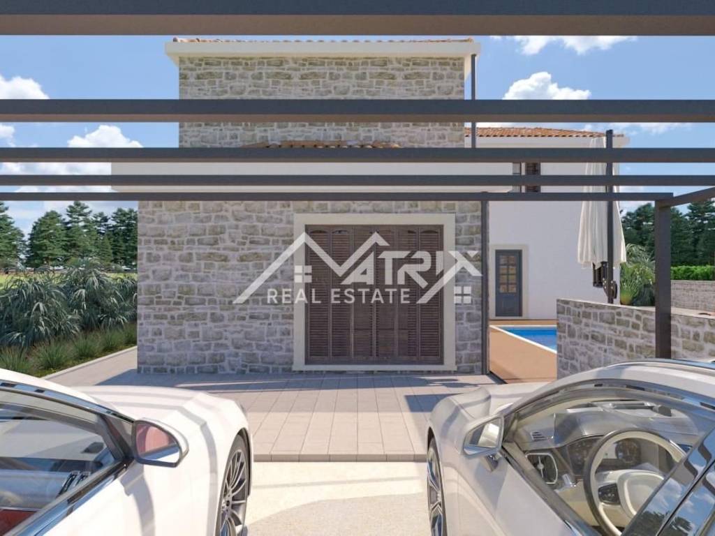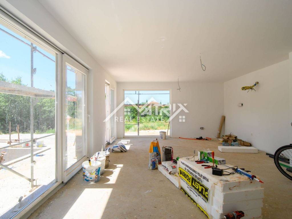 In a quiet village, not far from the city of Poreč and the sea, there is this detached modern house with a swimming pool under construction. The house is spread over three floors: ground floor, first floor and basement, with a total living area of 240 m2.