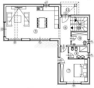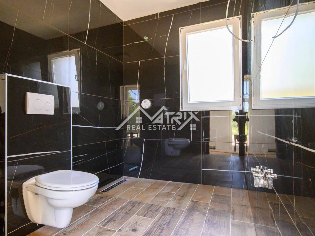 On the first floor of the house there are two bedrooms with their own bathrooms and access to a shared loggia with a view of nature. The house also has a spacious basement where there is a pool engine room and two large rooms, one of which is designed as a wine cellar (tavern), but the future owner has the option of adapting the space according to his wishes and needs.