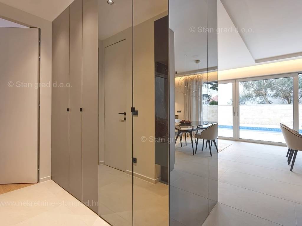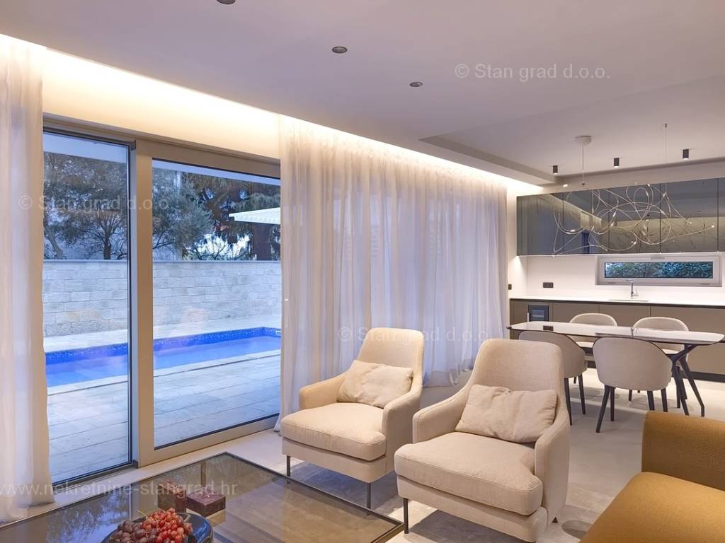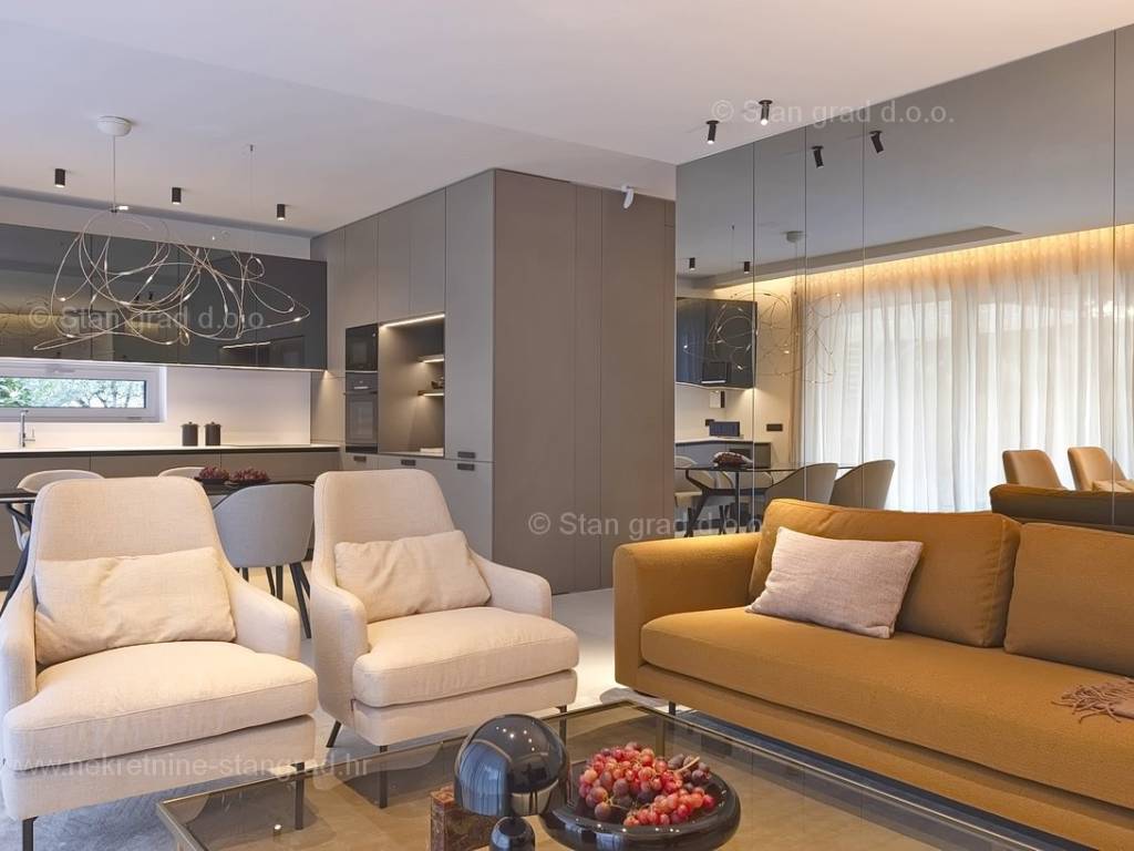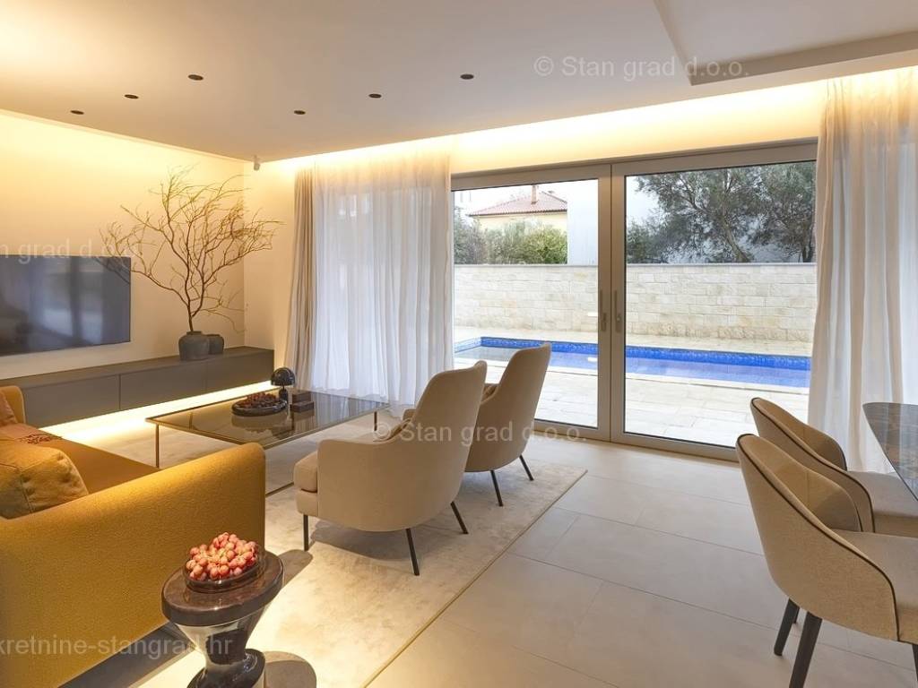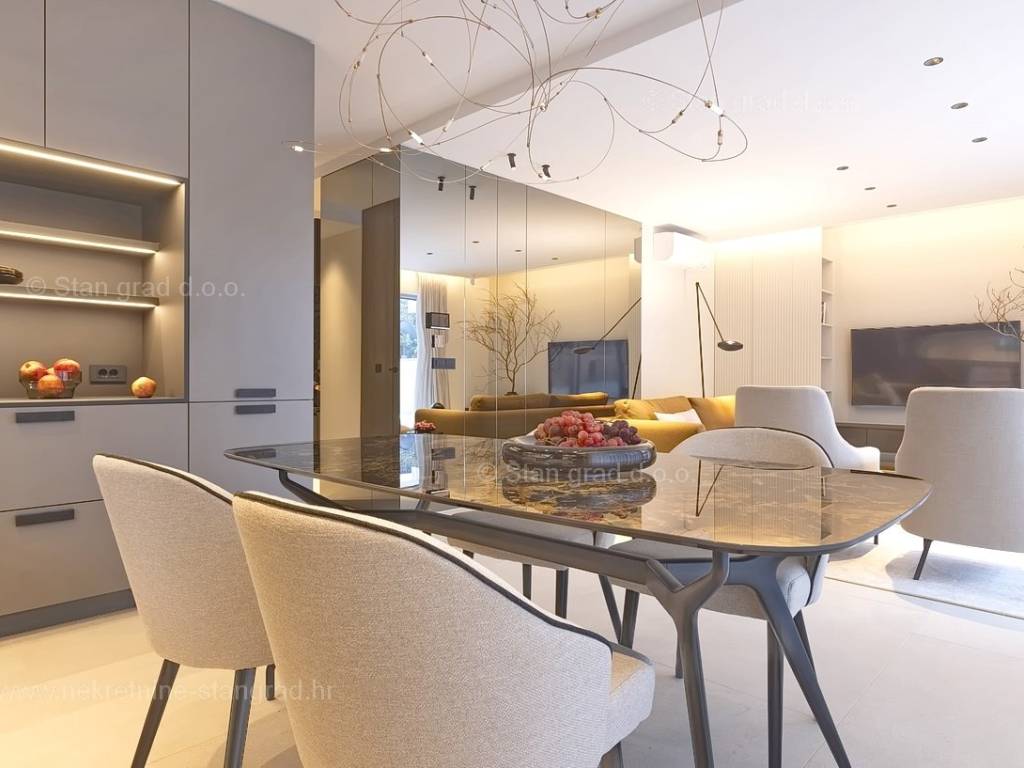 In the real estate offer of the Stan Grad Immobilien agency, on the island of Krk, there is a very attractive apartment perfect for a tourist stay and vacation on the Adriatic. The outstanding apartment is located in a quiet part of the town of Krk, close to the sea and close to the center of this tourist pearl. Considering the property by type, this is a spacious one-story apartment. In a first-class building, the apartment is located on the ground floor. The apartment has a total net usable area of 113 m2. On the mentioned surface there are 2 bedrooms, a bathroom, a kitchen with a dining room and a living room from which there is access to a spacious covered terrace of approx. 26 m2. It is important to emphasize that the ownership of the apartment in question also includes a spacious garden of approx. 200 m2 where there is a swimming pool, a sunbathing area and a barbecue. The owner of the apartment will have two parking spaces at his disposal. In addition to the above, it can also be noted that the apartment is oriented in such a way that it offers a nice view of the lovely coastal landscape and the closer surroundings of the city. This apartment is owned by a natural person and in the name of its transfer, the buyer is obliged to pay real estate sales tax in the amount of 3%. The owner guarantees complete and orderly technical ownership documentation and a simple transfer of the apartment to the buyer. It will be our pleasure to receive you and serve you on the island of Krk. The expert team of our agents will be happy to help you during the process of registering ownership and transferring utility connections to your name.