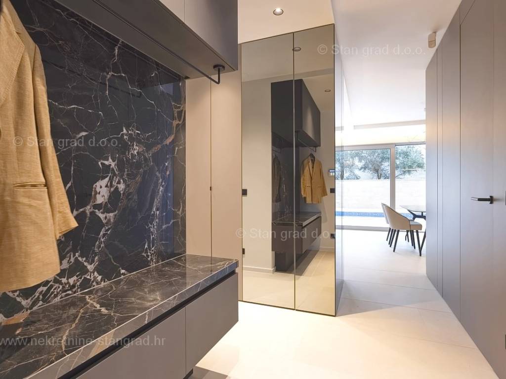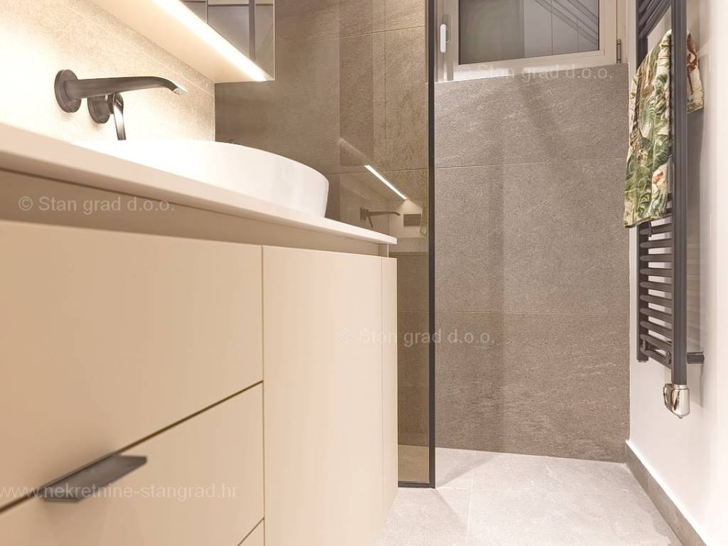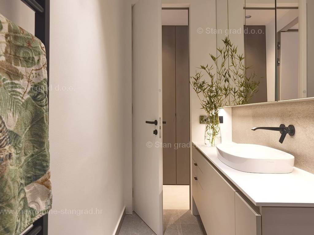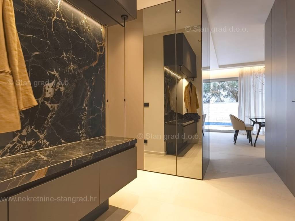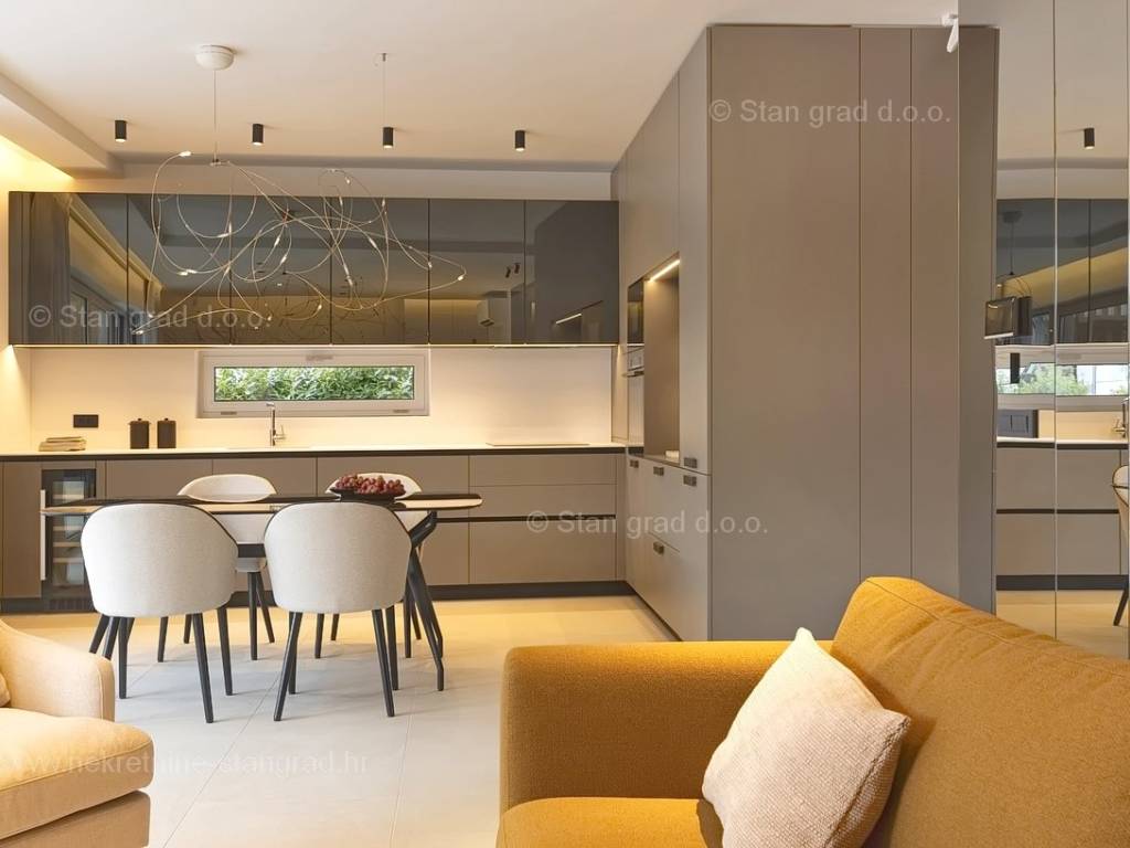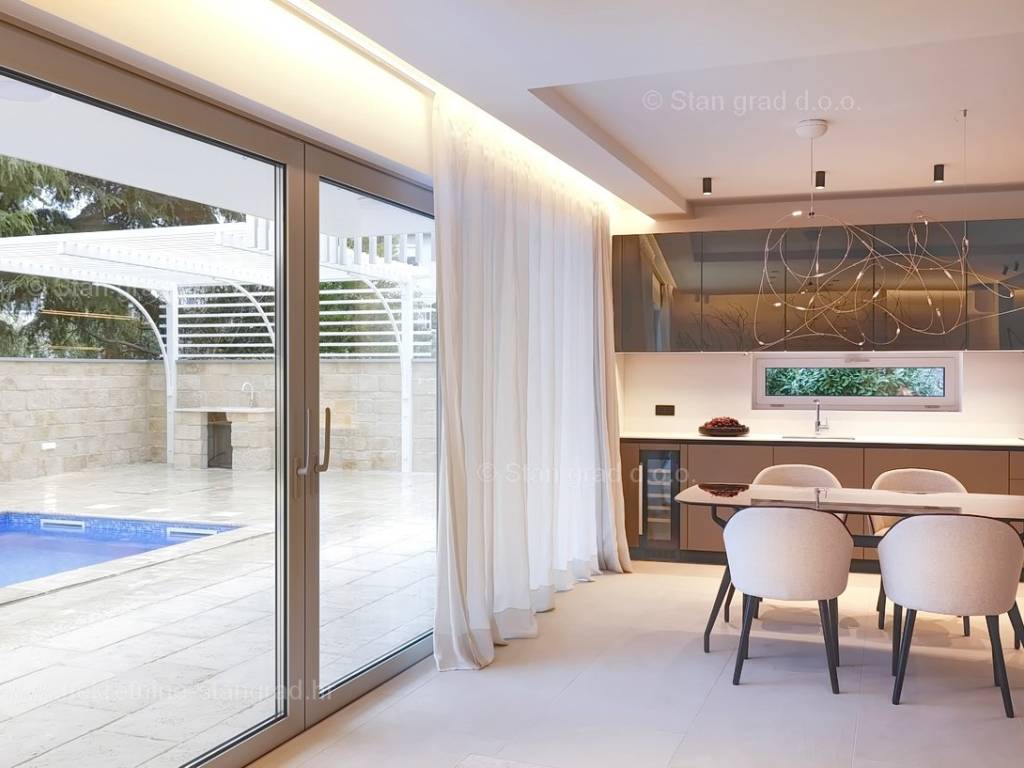 In the real estate offer of the Stan Grad Immobilien agency, on the island of Krk, there is a very attractive apartment perfect for a tourist stay and vacation on the Adriatic. The outstanding apartment is located in a quiet part of the town of Krk, close to the sea and close to the center of this tourist pearl. Considering the property by type, this is a spacious one-story apartment. In a first-class building, the apartment is located on the ground floor. The apartment has a total net usable area of 113 m2. On the mentioned surface there are 2 bedrooms, a bathroom, a kitchen with a dining room and a living room from which there is access to a spacious covered terrace of approx. 26 m2. It is important to emphasize that the ownership of the apartment in question also includes a spacious garden of approx. 200 m2 where there is a swimming pool, a sunbathing area and a barbecue. The owner of the apartment will have two parking spaces at his disposal. In addition to the above, it can also be noted that the apartment is oriented in such a way that it offers a nice view of the lovely coastal landscape and the closer surroundings of the city. This apartment is owned by a natural person and in the name of its transfer, the buyer is obliged to pay real estate sales tax in the amount of 3%. The owner guarantees complete and orderly technical ownership documentation and a simple transfer of the apartment to the buyer. It will be our pleasure to receive you and serve you on the island of Krk. The expert team of our agents will be happy to help you during the process of registering ownership and transferring utility connections to your name.