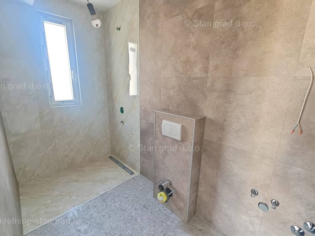 We offer a very high-quality apartment for tourist stays or living in the northern Adriatic on the usually desirable Kvarner destination, the island of Krk. The detached apartment is located in an urbanized residential area, not far from the center, the sea, the beaches and the necessary amenities in the vicinity of the city of Krk. In nature, it is a comfortable and spacious one-story apartment with a good arrangement of rooms. Within the framework of a modernly designed building, the apartment extends over the ground floor. The total area of this apartment is 81 m2. This area includes the living room and kitchen with dining room, toilet, 2 bedrooms each with their own bathroom and 2 terraces. The interior of the property is empty and completely free of furniture. It can also be pointed out that the ownership of the apartment allows the unhindered use of the common part of the garden where there is a swimming pool and sun deck. This apartment is owned by a parking space for parking two cars. In addition to the described characteristics, the property is also conveniently located, so it provides a very nice view of the charming seaside village. This apartment is owned by a natural person, so the buyer is obliged to pay sales tax in the amount of 3% when transferring its ownership to his name. The owner guarantees complete and orderly technical ownership documentation and a simple transfer of the apartment to the buyer. Our staff will make sure that you feel at home in Kvarner. Visit us on the island of Krk. If you place your trust in us, the Stan Grad Immobilien agency will be happy to help you transfer the ownership rights of this property and the bill for its utility connections and services to your name.