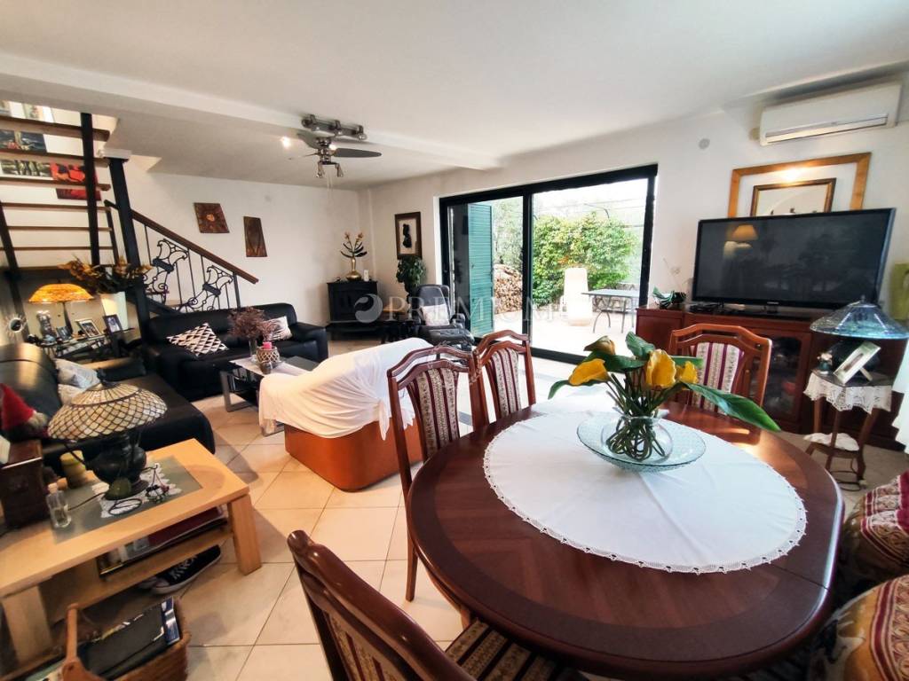 The house is for sale furnished, equipped with PVC windows and doors, two air conditioning units, a fireplace in the living room, flooring made of ceramic tiles and laminate,...