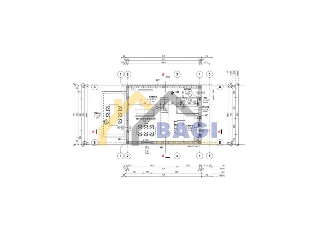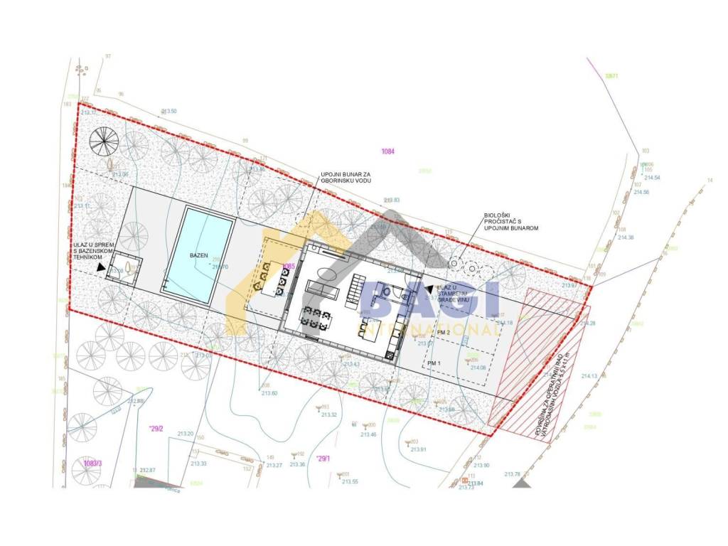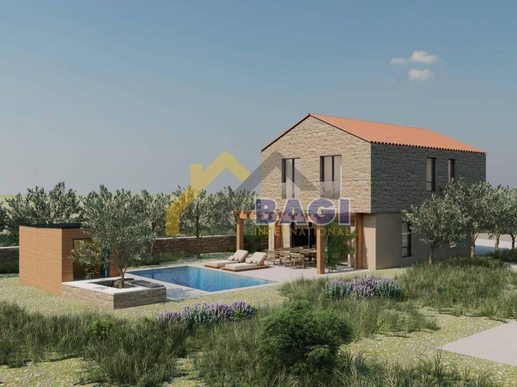 Na ovom zemljištu predviđena je gradnja moderne samostojeće kuće s prizemljem i katom, ukupne površine 120 m2 neto, koja uključuje prostrani dnevni boravak, blagovaonicu i kuhinju u open space formatu, toalet, hodnik, te unutarnje stubište koje vodi do tri udobne spavaće sobe, svaka sa vlastitom kupaonicom. Uz kuću, planirane su i pomoćne građevine: vanjski bazen (28 m2), spremište za bazensku tehniku, biološki pročistač, kao i dva parkirna mjesta. Vanjska terasa od 40 m2 savršena je za uživanje na otvorenom uz prekrasan pogled na prirodu.