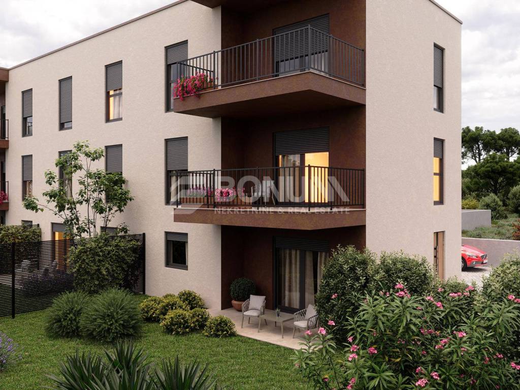 A ground-floor apartment in a smaller residential building is for sale in Brodarica near Šibenik, in a quiet location only about 400 m from the sea.