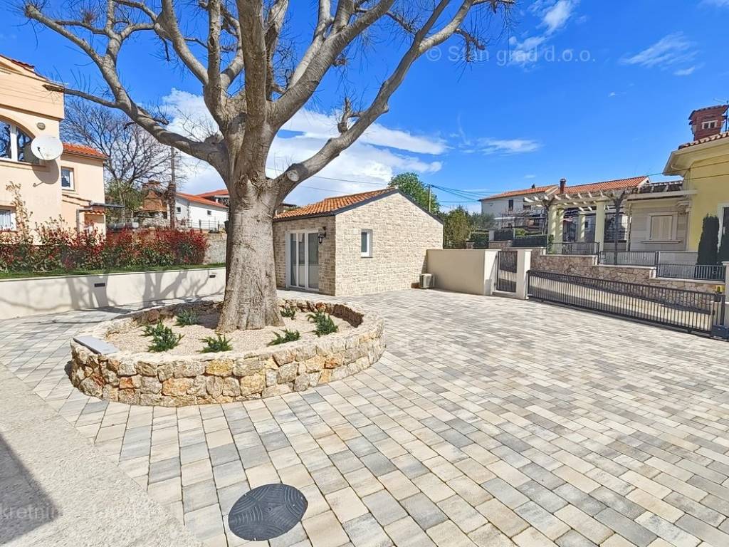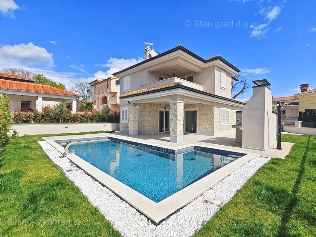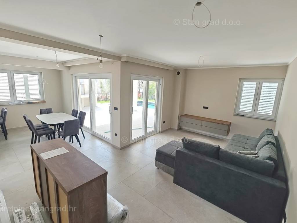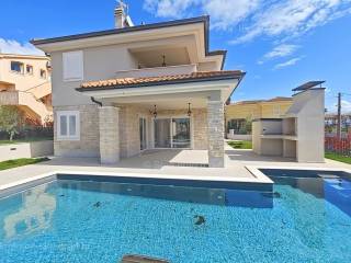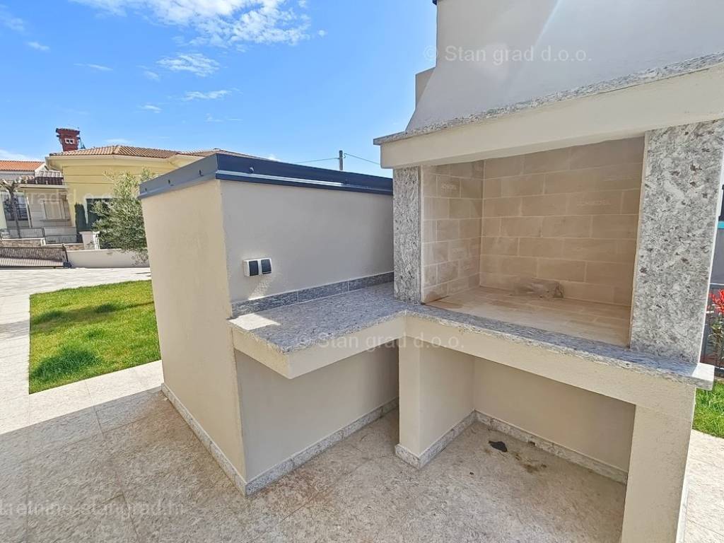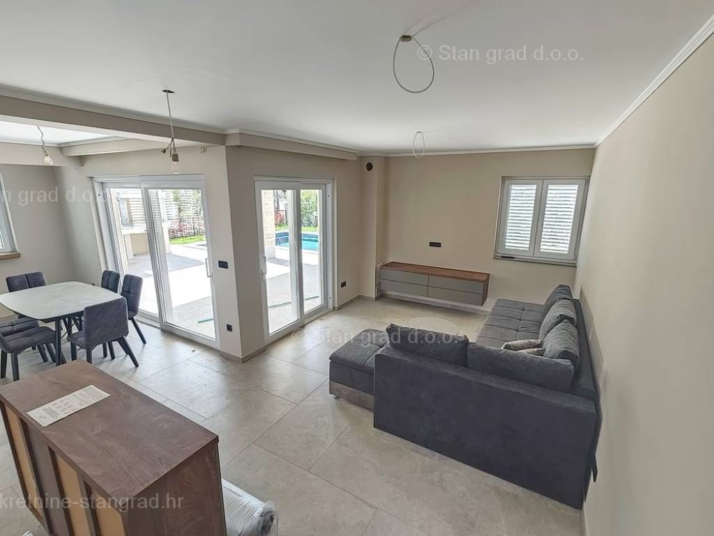 From the wide range of real estate in the northern Adriatic, Stan Grad Immobilien offers a very luxurious seaside villa in the attractive tourist region of the island of Krk. This house is positioned in a quiet location near the town of Vrbnik, not too far from the sea. From a structural point of view, this is a single-story house with a spacious garden and a swimming pool. The property covers a total area of 137 m2. It consists on the ground floor of an entrance area, a toilet, a kitchen with a dining room and a spacious living room with an exit to the terrace. Upstairs there are 3 bedrooms, 2 of which have a shared terrace with a partial sea view and 2 bathrooms. Attached to the described house is a well-organized garden with an auxiliary building (tavern) equipped with a grill area for socializing and relaxing. The yard of approx. 500 m2 will be completed by a large heated swimming pool with a sun deck. There is a spacious parking lot in the yard of the described house. In addition to the above, it should be noted that the house also has some views of the sea. High-quality construction, rustic architecture and top-quality equipment. The villa will be equipped with PVC carpentry, shutters, floor coverings made of high-quality ceramics and high-quality sanitary facilities, underfloor heating with a heat pump and preparation for solar panels. The environment itself will be beautifully decorated with Mediterranean plants, supplied with an irrigation system. and green areas. This house is included in the VAT system and is exempt from the payment of real estate sales tax, which in reality relieves the buyer of this property from the relevant tax obligations. The owner of the house guarantees proper ownership and technical documentation and the possibility of quickly transferring ownership of the property to the buyer. We cordially await you at the address of the office on the island of Krk. If you place your trust in us, the Stan Grad Immobilien agency will be happy to help you transfer the ownership rights of this property and the bill for its utility connections and services to your name. The villa is under construction and the planned completion of construction is expected in the summer of 2023.