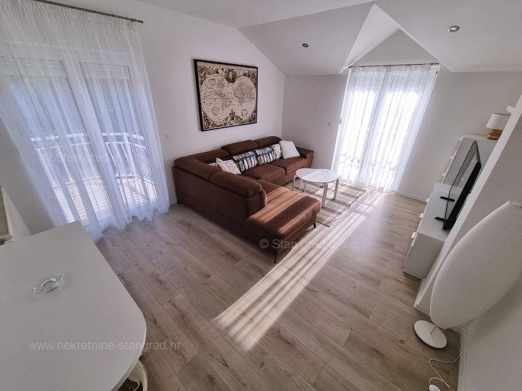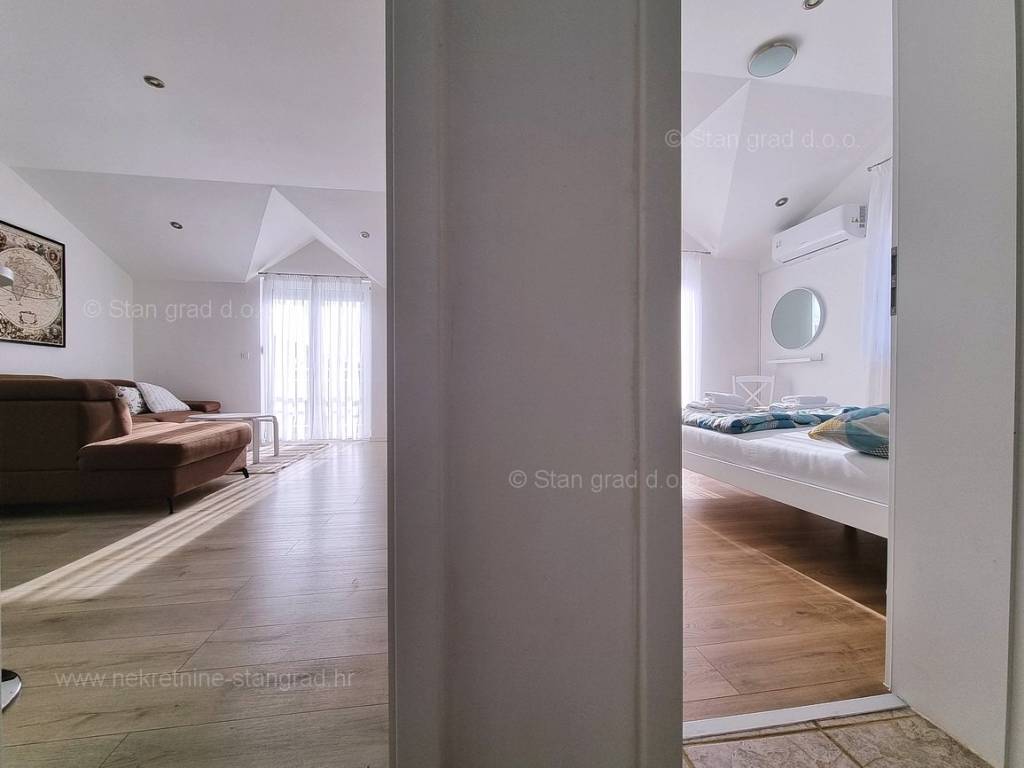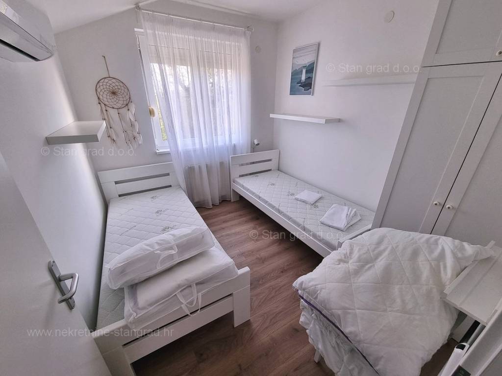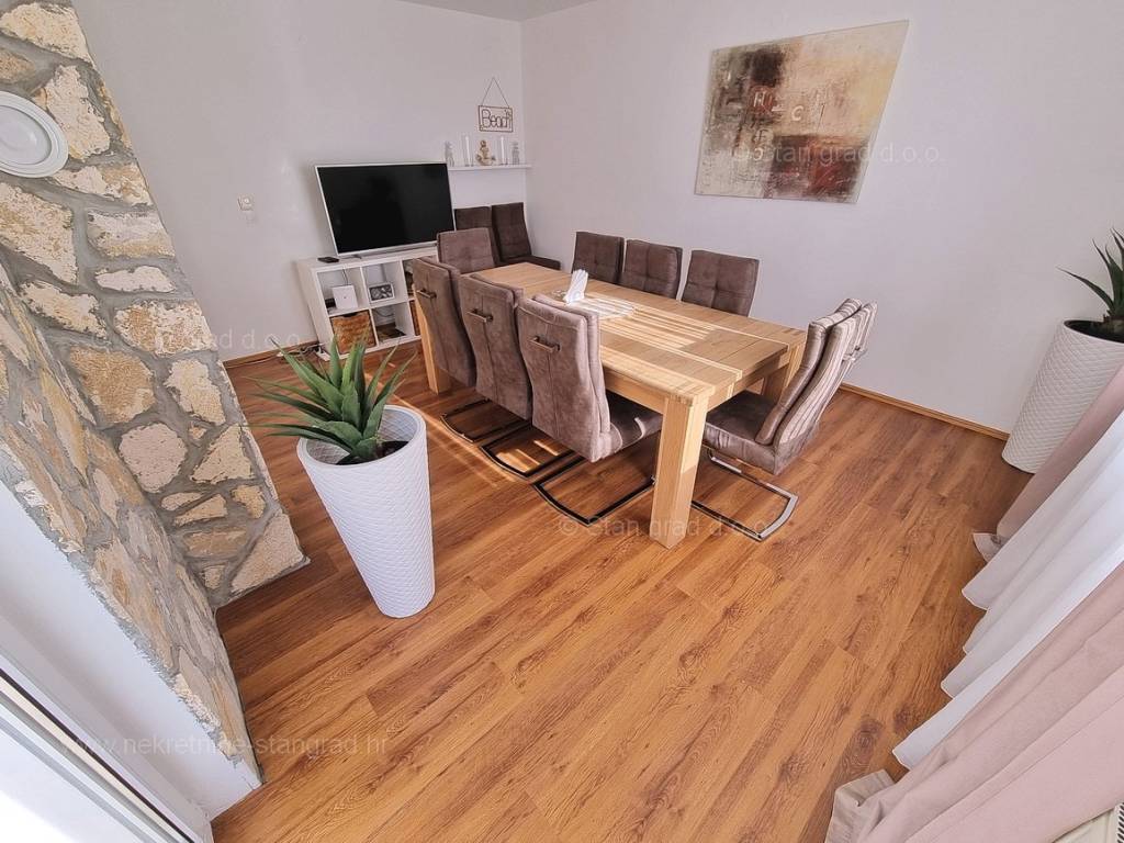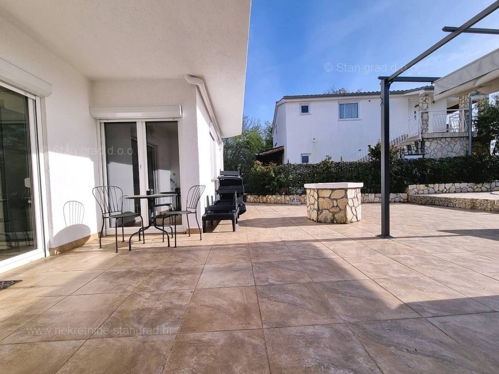 In the offer of our agency, on the super attractive northern Adriatic area of ​​the island of Krk, in Kvarner, a fully furnished tourist house is for sale, which provides the perfect atmosphere for spending annual and weekend vacations. This affordable house is located near the town of Krk, in a green location without city noise. Structurally speaking, this is a single-story house. The modern built house consists of a space distributed over a total of 2 floors. The house was built as a single-family building. The total area covered by this house is 200 m2. This area includes the living room and kitchen, 5 bedrooms, 3 bathrooms and a terrace. The interior of the property is fully equipped with new, high-quality technical devices and uniquely designed furniture. The added value of this entire facility is given by the garden with a swimming pool and sun deck. In the garden of this house there is enough space to park two cars. In addition to the above, it should be noted that the house has a beautiful view of this seaside place. The house in question is owned by a physical obligation and upon transfer of ownership is subject to the calculation of real estate transfer tax in the amount of 3%. The seller guarantees clean ownership documentation of the house and easy transfer of the property. Our team is waiting for you at the prominent address of the company's Kvarner office on the island of Krk. If you decide for us, the expert team of the brokerage office Stan Grad Immobilien will be happy to help you with the transfer of ownership of the property and the bill for utility connections in your name.