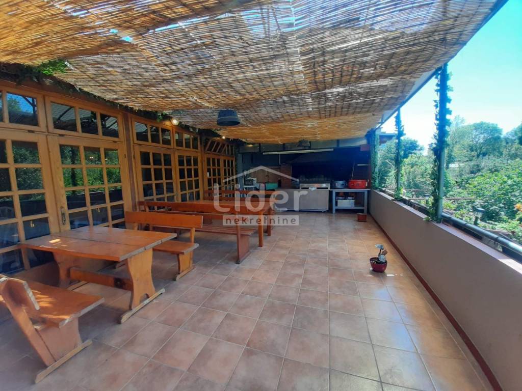 Mlaka, na ponudi imamo restoran ukupne površine 219,88 m2 koji se sastoji od dvije sale, velike terase, tri spremišta, sanitarnog čvora i kuhinje i odvojenog stambenog prostora - u naravi 1-sobni stan. Prodaje se sa svim inventarom. Restoranu pripada i vrt od 167m2 koji nije u vlasništvu, nego na korištenje.